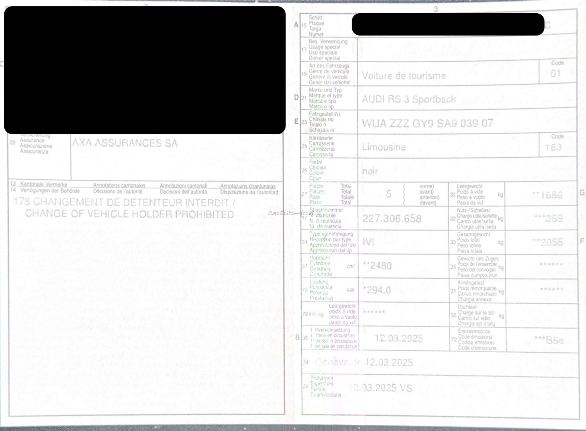 | Kommentar | Das Fahrzeug weist diverse Karosserie- und Innenraumschäden auf. Gemäss der beiliegenden Schadenübersicht belaufen sich die Reparaturkosten auf 8'925.50 CHF brutto. Alle Details zu den Beschädigungen entnehmen Sie bitte direkt der Expertise. Bereifung Bitte beachten Sie die abweichende Bereifung an diesem Fahrzeug. Es ist auf der Vorderachse mit Sommerreifen und auf der Hinterachse mit Winterreifen ausgestattet. Fehlendes Zubehör Der Zweitschlüssel fehlt, das Auto wird mit nur einem einzigen Schlüssel übergeben. Fahrzeugausweis müsste ebenfalls selbst ein Duplikat bestellt werden. Technik Es wurde explizit keine mechanische Prüfung am Fahrzeug durchgeführt. Abholort Das Fahrzeug muss zwingend an der Industriestrasse 15 in 2557 Studen abgeholt werden. Auktionsbedingungen Sie bieten exakt auf den Zustand, der hier und in der Expertise ausgewiesen ist. Jegliche Nachverhandlungen nach Auktionsende sind kategorisch ausgeschlossen. |
