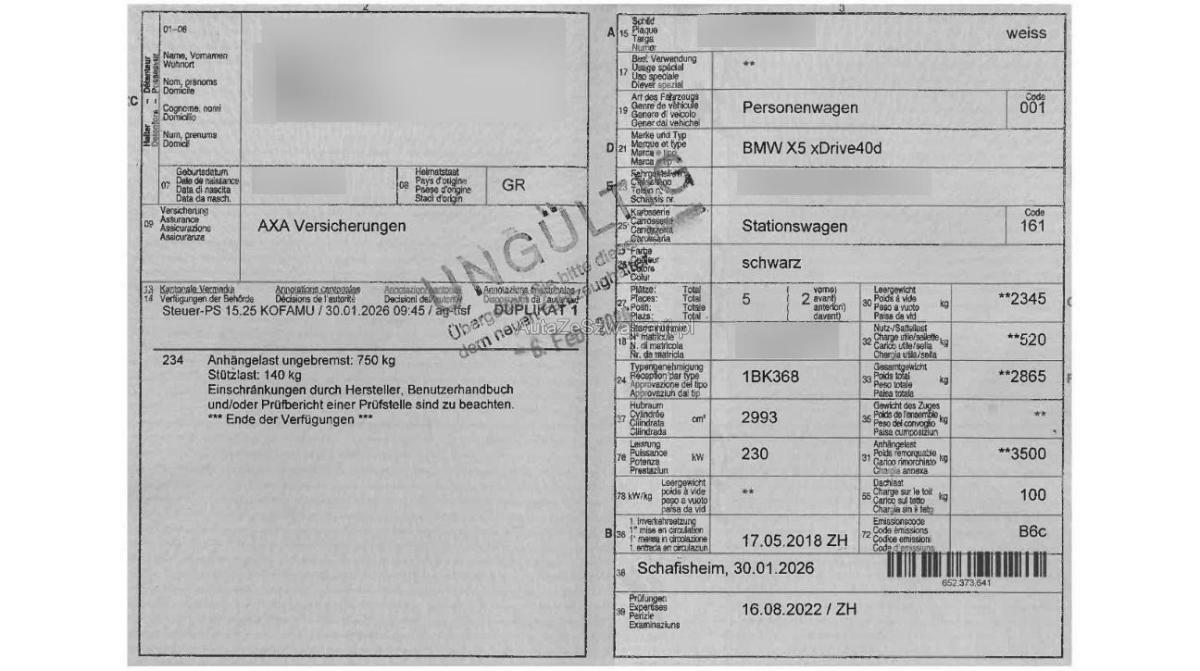 | Fahrzeugausweis | Vorhanden |