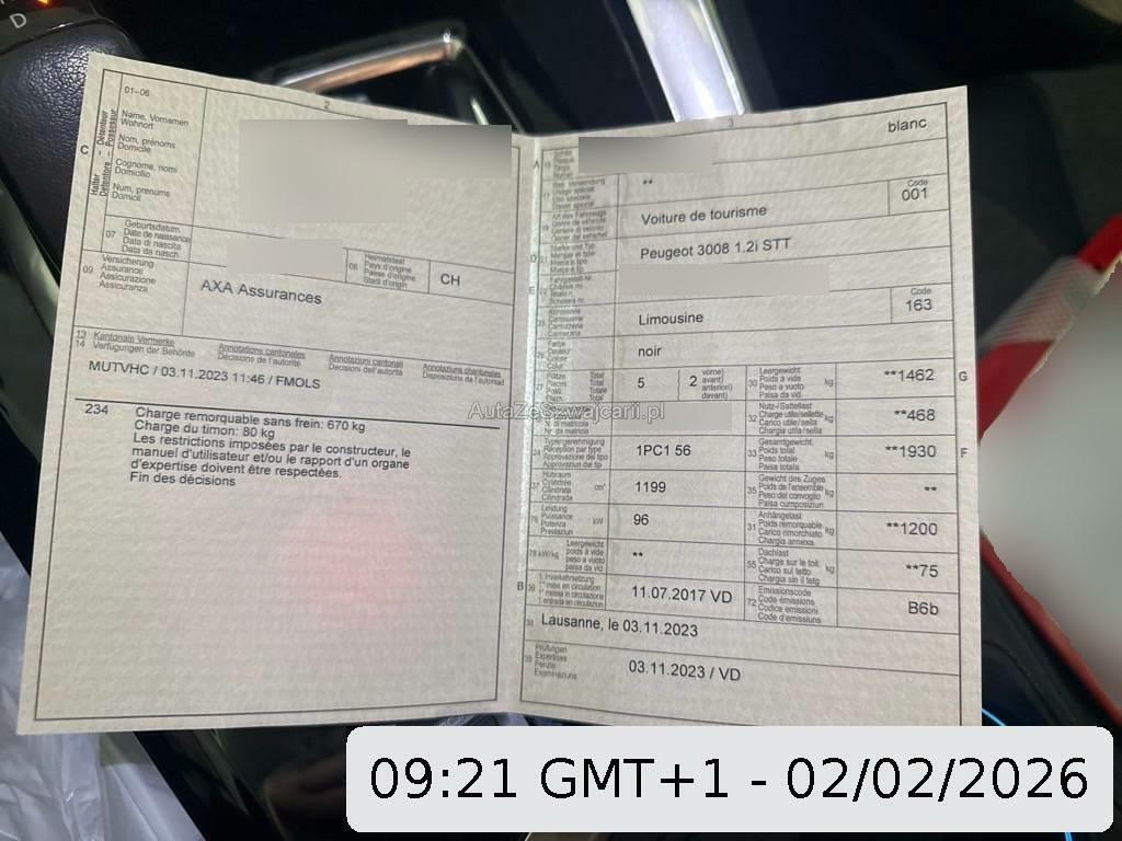 | Sonderausstattung | Pack City 2 (Assist: Rückfahrkamera, Aktive Einparkhilfe, Kamera vorn, 360°-Kamera), Navigationssystem mit Sprachsteuerung Peugeot Connect SOS und Assistance, DAB, Anhängevorrichtung mit abnehmbarem Kugelkopf 13-polig, Sitze: Vordersitze heizbar, Lackierung: Metallic-Lackierung, Keyless Entry / -Start |