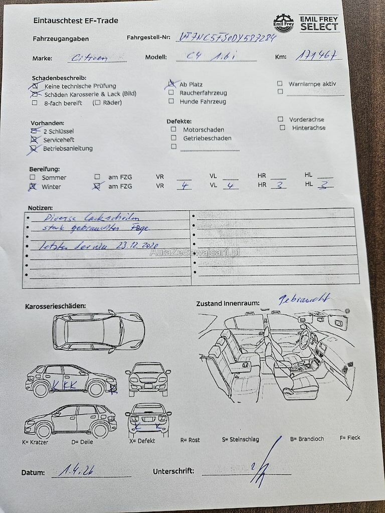 | Information | Diverse Karrosserieschäden, Gebrauchtes Fahrzeug keine Sommerpneu |
