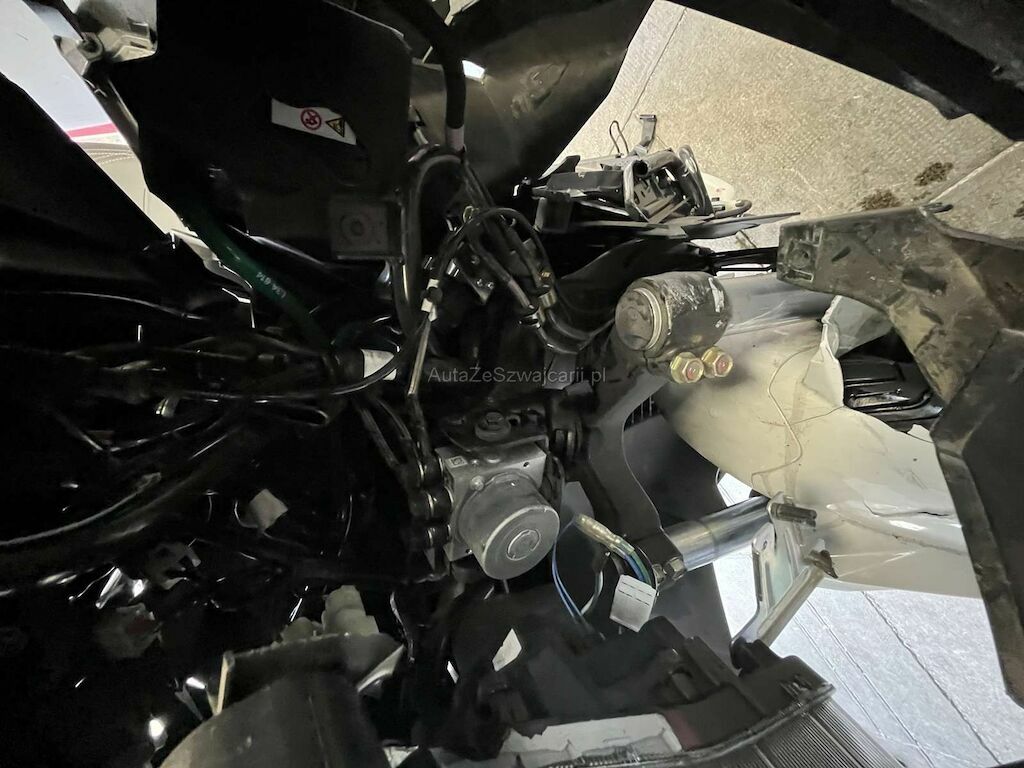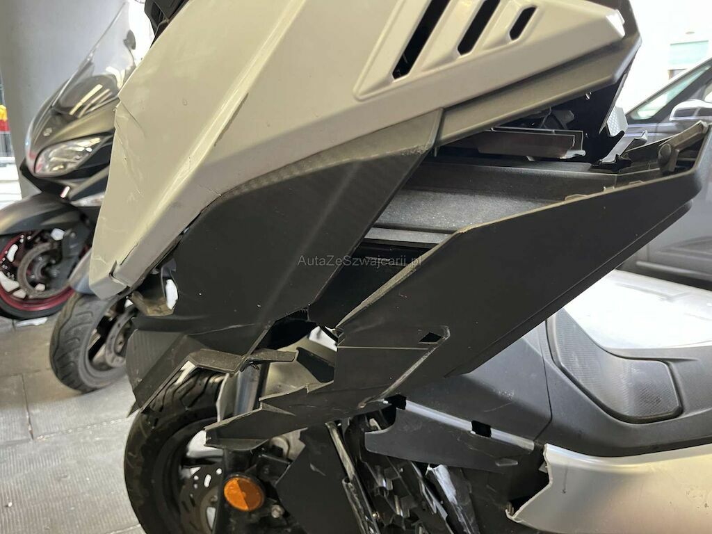 Choc avant: Fourche avant, Face avant, support de face avant, phare, cadre, tablier intérieur, pare-boue avant, bas de caisse droit, guidon endommagés et cassés.