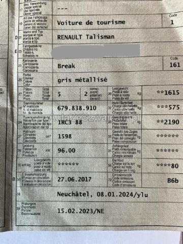 | Condition_and_Equipment | Bereifung Fahrzeug wird mit Winterräder abgegeben. Schlüssel Nur ein Schlüssel vorhanden. --- Achse Lenkgetriebe ist beschädigt. --- Serienaustattung Airbag Fahrer und Beifahrerseite CD-Player Elektrische Fensterheber vorne + hinten Servolenkung Seitenairbag Fahrer und Beifahrerseite Lederlenkrad Kopfairbag vorne und hinten ABS und EBV Elektr. Bremskraftverteilung Leichtmetallfelgen 18" Deaktivierung Beifahrerairbag ESP/ ASR Aussenspiegel elektrisch verstellbar/ heizbar und anklappbar Bremsassistent EBA Isofix-Kindersitzbefestigung Zwei Zonen-Klimaautomatik Tempomat mit Geschwindigkeitsbegrenzer Automatisch abblendbarer Innenspiegel Sonnenschutzrollo für Seitentüren hinten Regen- und Lichtsensor Dieselpartikelfilter Bluetooth-System Sitzbezüge in Stoff/ Kunstleder Renault Chipkarte Keyless-Drive Hands-free Berganfahrhilfe Einparkhilfe vorne und hinten Anschluss USB und AUX Reifenreparatur-Kit Stop + Start System LED-Scheinwerfer LED Tagfahrlicht Rücksitze umklappbar 60/40 Spurhalteassistent LDW Keine Gewähr auf die Angaben der Serienausstattungen DAB+ Digital Audio Broadcast Adaptiver Fernlichtassistent Toter-Winkel-Assistent R-Link/ Navi Verkehrsschild-Erkennungssystem Apple Car Play/ Android Auto Sonderausstattung Metallic-Lackierung Rückfahrkamera Pack Winter Notrad Pack Cruising Pack 4Control |