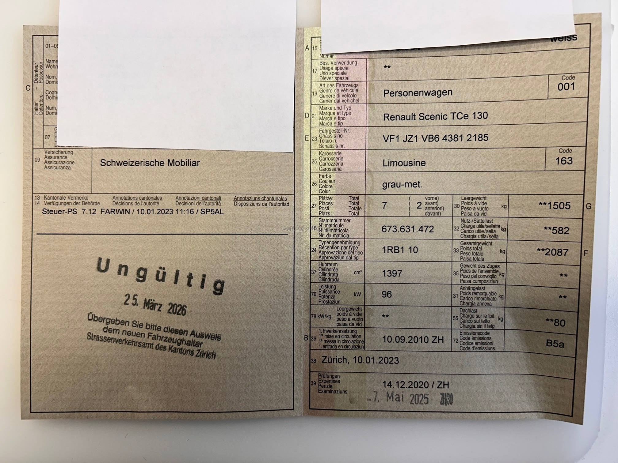 | Kommentar | Fahrzeug mit gedehnter Steuerkette! Der Wagen läuft noch macht aber Schleifgeräusche und stellt im Leerlauf ab. Rundum Beschädigungen an der Karosserie. Das Fahrzeug wurde nicht abschliessend getestet. Wir verkaufen den Wagen ab Platz ohne Nachwährschaft. Fahrzeug im Kundenbesitz und muss daher in Cash bezahlt werden. Abholung max. 5 Tage nach Auktionsschluss. |