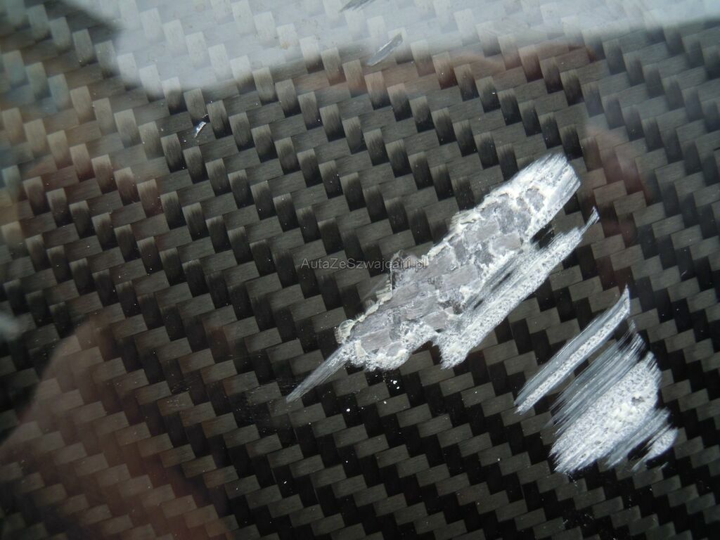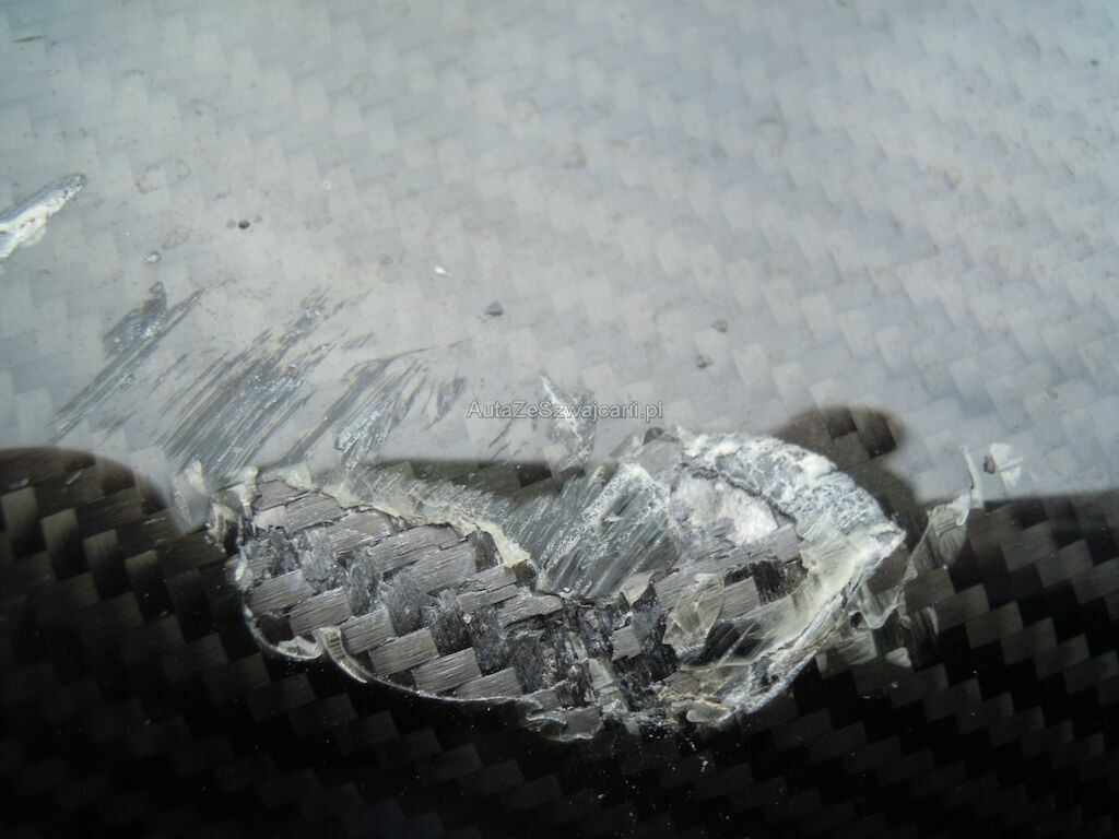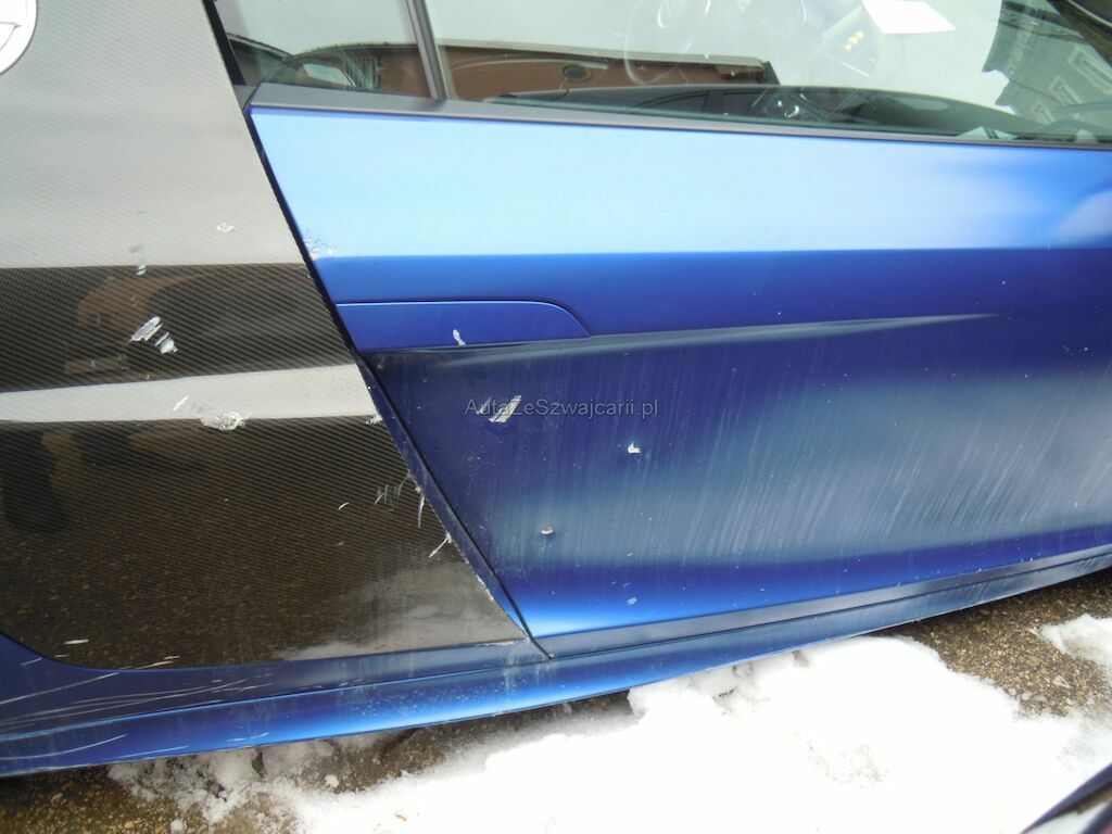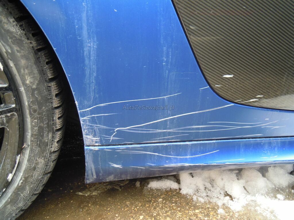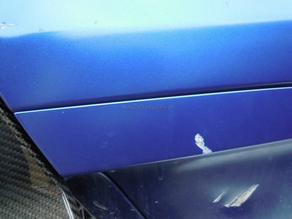 Dommage latéral droit: Pare-chocs, spoiler inférieur, phare, grilles, pare-brise, baie pare-brise, jante avant, disque de frein cassés, radiateur, condenseur enfoncés, traverse avant droite pliée, capot déformé, aile avant arrachée, suspension avant fortement endommagée, porte déformée, ceintrée et griffée, éclat sur la coque rétroviseur, revêtement de bas de caisse cassé et griffé, panneau latéral arrière droit griffé et délaminé, aile arrière et montant pare-brise griffés, jante arrière fortement griffée intérieur et extérieur, suspension arrière endommagée, diffuseur arrière griffé et délaminé, caches soubassement griffés. Soubassememt du véhicule sous réserve.