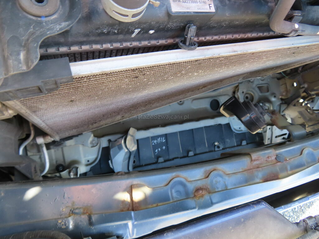 - Pare-chocs, calandre, grilles, phare gauche, masque avant, déflecteur d’air, spoiler, condenseur, radiateur, ventilateur, guides, supports : Impactés-éraflés-brisés