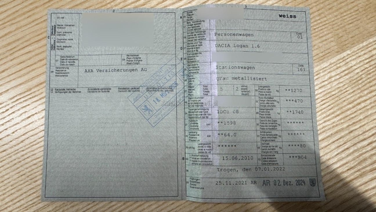 | Fahrzeugausweis | Vorhanden |