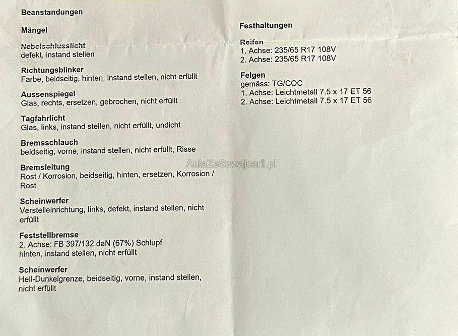 MFK- Nicht bestanden, siehe MFK-Bericht (Fahrzeug beanstandet)