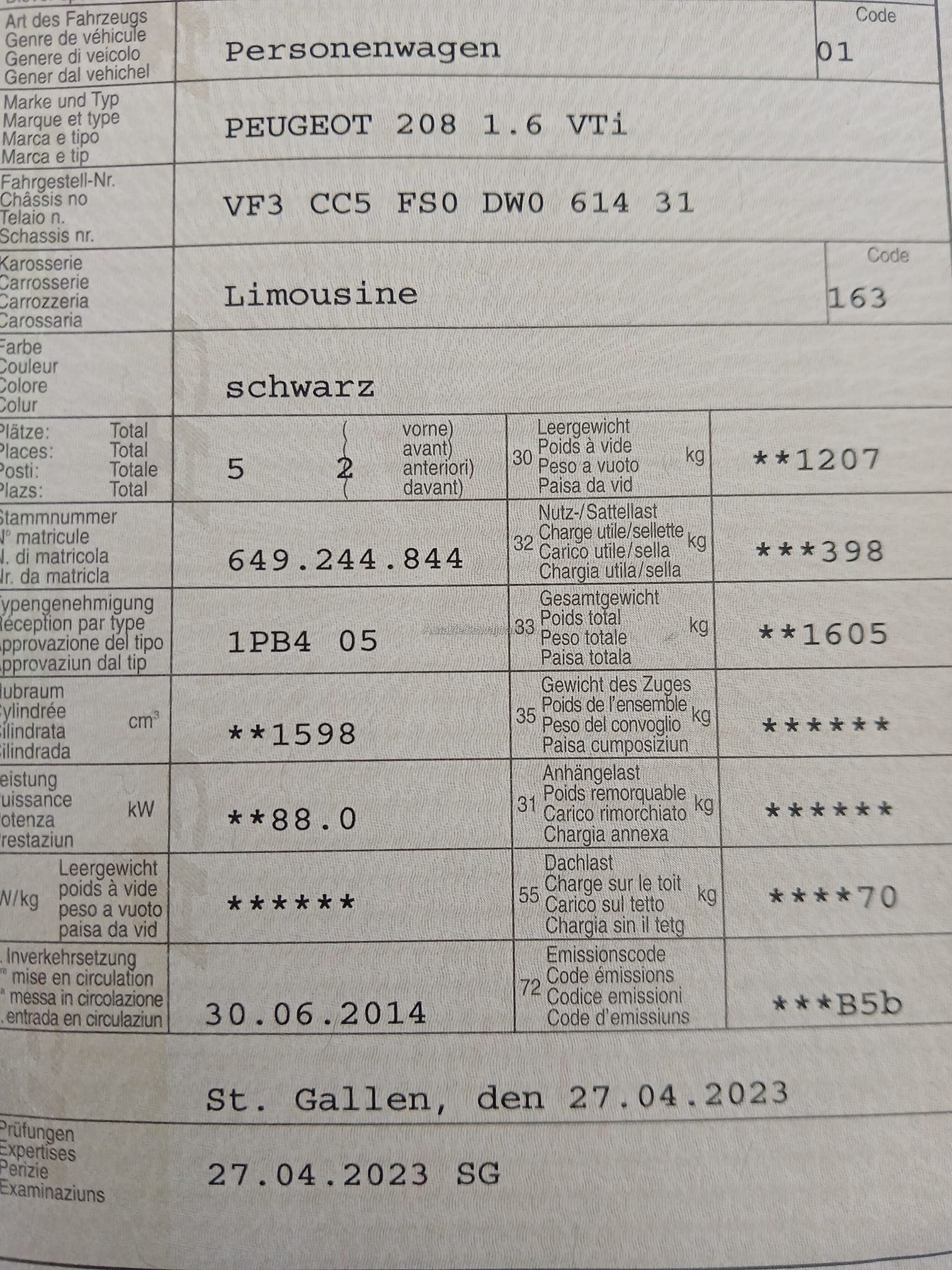 | Kommentar | Technisch nicht geprüft. Fahrzeug läuft ohne Probleme kann gefahren werden und Warnlampen leuchten keine. Hat 2 Schlüssel, Serviceheft ist auch vorhanden. Winterräder und Sommerräder mit gutem Profil. Fahrzeug hat an der Carosserie kleinere Kratzer und keine Dellen. Innen soweit in gutem Zustand, braucht eine gründliche Aufbereitung. Fahrzeug muss innert 7 Tage abgeholt werden. ( Banküberweisung) |