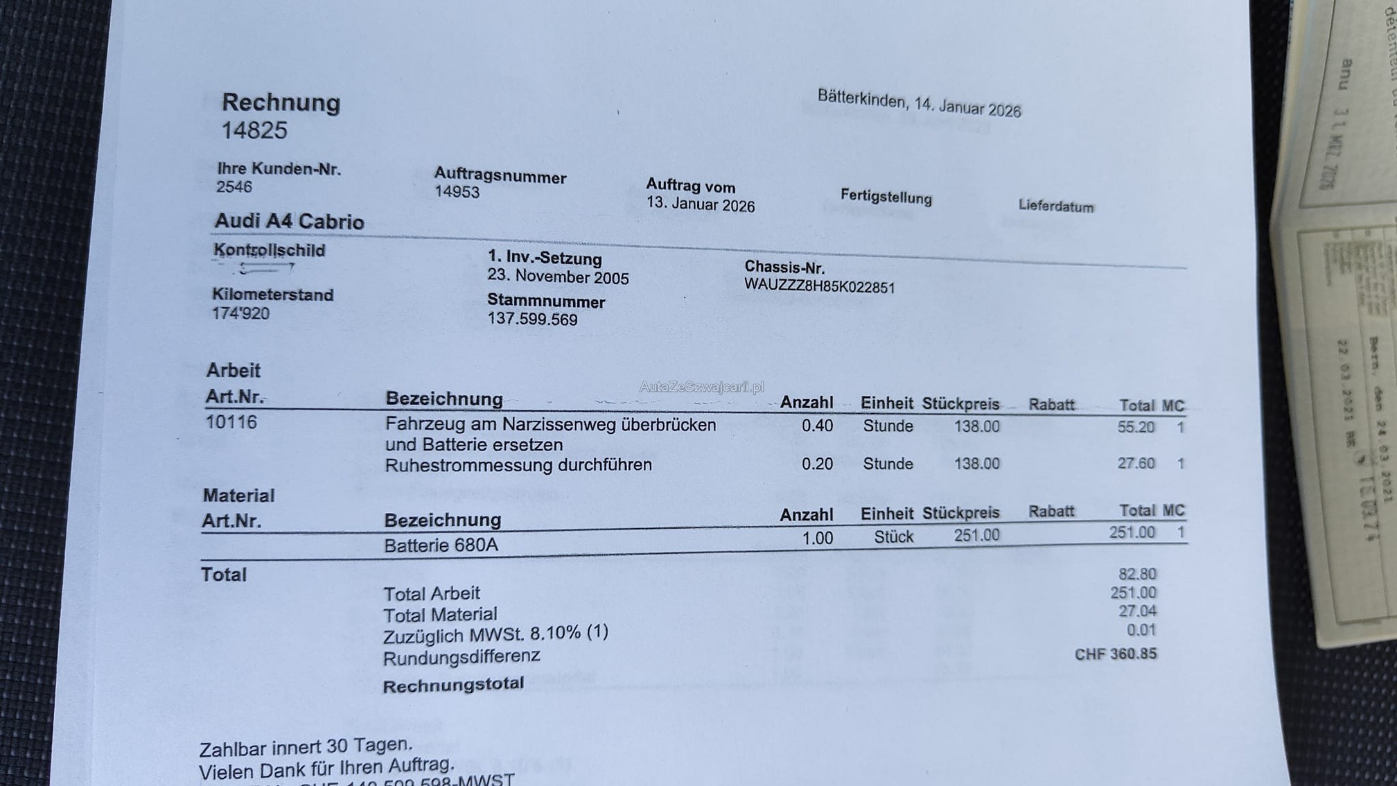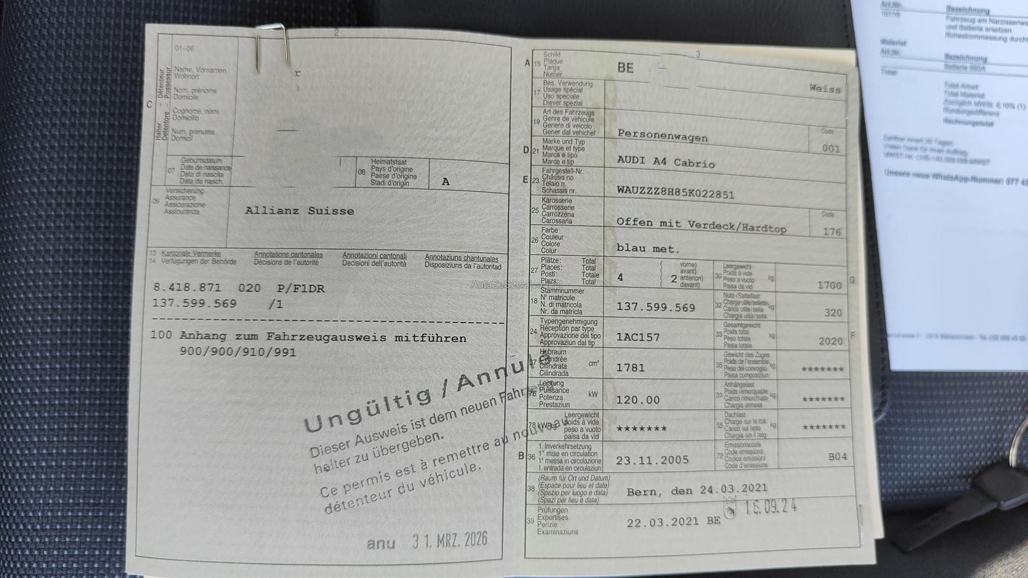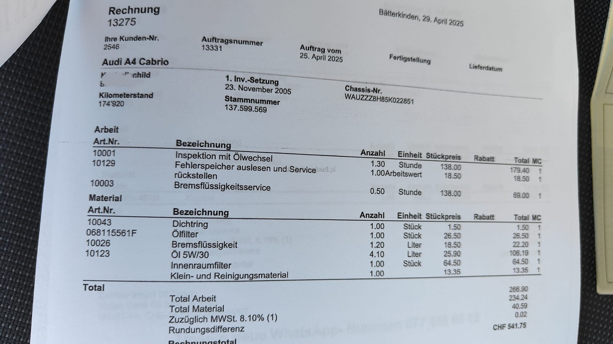 | Kommentar | - Geräusch Vorderachse beim Lenken - Div. kleinere Dellen und Kratzer vorhanden - Fahrzeugbereifung, Fahrzeugzustand und Ausstattung gemäss Bildern. Unsere Fahrzeuge wurden keiner Prüfung unterzogen, Fahrzeugkauf auf eigenes Risiko ab Platz ohne Nachwährschaft. Das Gewährleisten für Sachmängel wird weggegangen. |