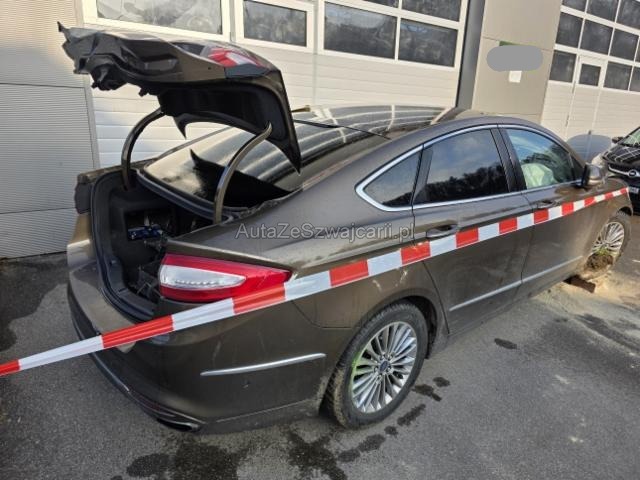 | Condition_and_Equipment | Zustand Fahrzeug muss transportiert werden (Höhe und Breite beachten). Schlüssel Nur ein Schlüssel vorhanden. --- Links Anstoss links im Bereich der A-Säule. Schweller links ist eingedrückt. Tür vorne links ist eingedrückt. Rechts Anstoss rechts im Bereich der A-Säule. Schweller rechts ist eingedrückt. Tür vorne rechts ist eingedrückt. Front Front eingedrückt. Kotflügel vorne rechts und links eingedrückt. Motorhaube eingedrückt. Frontblech/Maskenblech eingedrückt. Radhaus vorne rechts und links eingedrückt. Längsträger vorne rechts und links gestaucht. Motor Risiko Motor. Risiko Getriebe. Risiko Differenzial. Motoranbauteile beschädigt. Alle Kühler vorne sind eingedrückt. Öl-/Kraftstoffaustritt vorhanden Achse Vorderachse ist beschädigt. Risiko Hinterachse. Risiko Lenkung. Innenraum Beide Airbags sind ausgelöst. Seitenairbag rechts ausgelöst. Seitenairbag links ausgelöst. Armaturenbrett ist beschädigt. Gurtstraffer ausgelöst. Glas Windschutzscheibe ist gerissen. Sonstige Schäden Div.Carrosserie Teile sind leicht beschädigt. Weitere Beschädigungen Schaden, Ausstattung & Zustand gemäss Bilder !!! --- Serienaustattung Airbag Fahrer und Beifahrerseite Sitzheizung vorne Fahrersitz elektrisch verstellbar mit Memory Elektrische Fensterheber vorne Metallic-Lackierung Seitenairbag Fahrer und Beifahrerseite Heizbare Frontscheibe Nebelscheinwerfer Elektrische Fensterheber hinten Lederlenkrad mit Lederschaltknauf Park-Distanz-Sensor vorne + hinten Lendenwirbelstütze Fahrersitz ESP/ TCS Isofix-Kindersitzbefestigung Lendenwirbelstütze Beifahrersitz Ambientebeleuchtung Leichtmetallfelgen 18" Doppelspeichen Windowbags vorne + hinten Zwei Zonen-Klimaautomatik Rückfahrkamera Tempomat mit Geschwindigkeitsbegrenzer Garantie 5 Jahre/ 100'000 km Passformteppiche vorne und hinten Knieairbag Fahrer ABS und EBD Elektr. Bremskraftverteilung Automatischer Scheibenwischer mit Regensensor Aussensp. el. verst./ heizb. u. anklappbar/ Einstiegsbel. Fernlichtassistent Vollleder Armaturenbrett in Leder Reifendruck-Sensoren TPMS Reifen-Reparatur Set Rücksitze umklappbar 60/40 Spurhalteassistent LDW Lichtautomatik Ford Servicepack 5 Jahre/ 5 Services/ 100'000 km Keine Gewähr auf die Angaben der Serienausstattungen Keyless Start Parkassistent Verkehrsschild-Erkennungssystem Adaptive LED-Scheinwerfer Navigationssystem Sony Premium SD mit DAB+ Keyless Start + Keyless Entry Dachhimmel hell Sonderausstattung Adaptiver Tempomat ACC Lenksäule elektrisch verstellbar mit Memory Getönte Scheiben hinten Sicherheitsgurte mit integriertem Airbag hinten Kopfstützen vorne verstellbar Pack Technology/ Comfort |