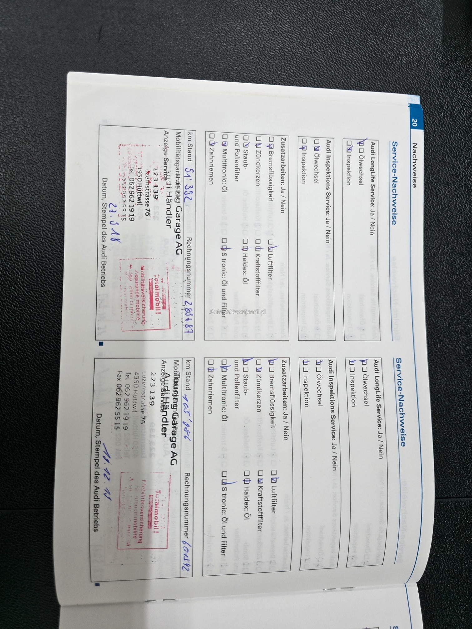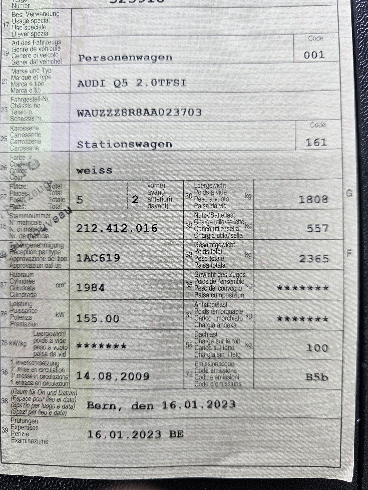| Kommentar | Aus 1.Hand unfallfrei und keine Nachlackierungen. Servicegepflegt. Ölverbrauchsproblem wurde auf Garantie bei ca. 70'000km behoben. Keine Kratzer oder Beulen. Kaum Steinschläge. 20 Zoll Sommerfelgen mit Pneu. Es wurde kein Werkstatttest gemacht. Jegliche Gewährleistung wird wegbedungen, insbesondere sind Wandelung und Minderung ausgeschlossen. Die Verantwortung liegt beim Käufer. Rückgabe ausgeschlossen. |