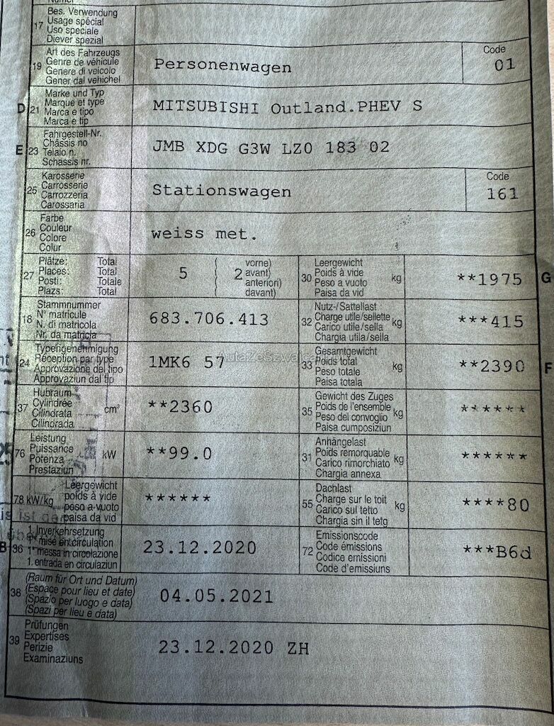 | Typ | Outlander 2.4 PHEV Diamond S-Edition |