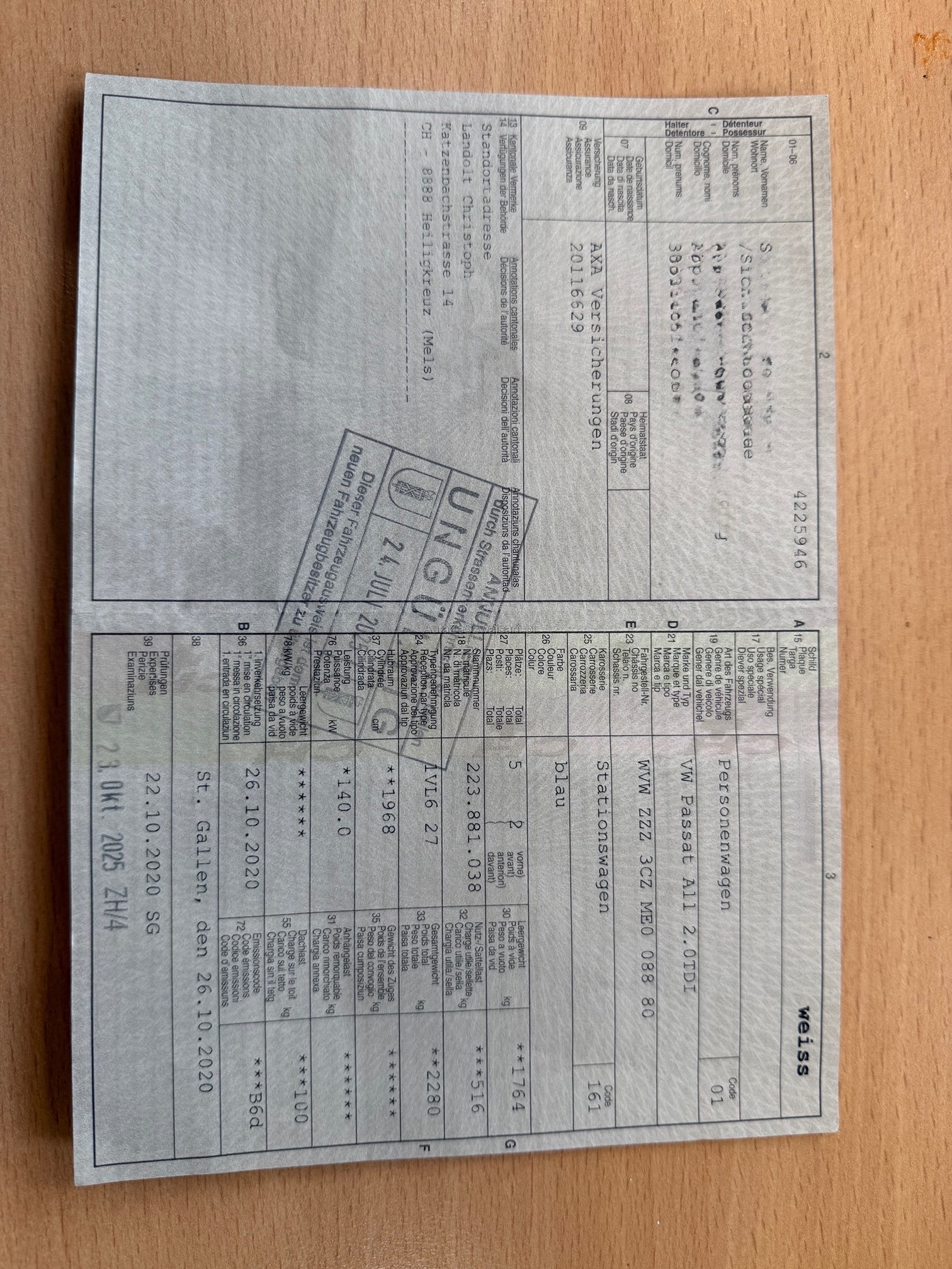 | Kommentar | Dieselpartikelfiltertest Ausdruck ist nicht vorhanden. Hat aber 23.10.2025 beim MFK Bestanden 8-fach / Winter montiert, Sommer nur Pneu relativ neuwertig Am Fahrzeug wurde kein Werkstatttest gemacht (Für sichtbare oder nicht sichtbare Mängel wird nicht gehaftet). Wir testen & kontrollieren nicht alle Funktionen vom Fahrzeug. Das Risiko liegt somit vollumfänglich beim Käufer. Nachdem der Höchstbietende den Zuschlag erhalten hat, gibt es keine Nachverhandlung, auch wenn nicht deklarierte Mängel zum Vorschein kommen sollten. Ab Platz ohne Garantie, Wandelung und Minderung werden weggebunden. |