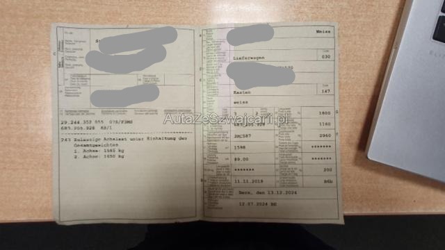 | Condition_and_Equipment | Zustand Fahrzeug muss transportiert werden (Höhe und Breite beachten). Fahrzeug ist NICHT fahrbar. Fahrzeug ist rollbar. Bereifung Fahrzeug wird mit Winterräder abgegeben. Schlüssel Nur ein Schlüssel vorhanden. --- Rechts Anstoss rechts im Bereich der A-Säule. Anstoss rechts im Bereich der C-Säule. Anstoss rechts im Bereich der D-Säule. Tür hinten rechts ist eingedrückt. Front Front eingedrückt. Kotflügel vorne rechts eingedrückt. Motorhaube eingedrückt. Frontblech/Maskenblech eingedrückt. Radhaus vorne rechts eingedrückt / gestaucht. Heck Heck eingedrückt. Seitenwand hinten rechts eingedrückt/aufgestaucht. Heckblech eingedrückt. Kofferboden eingedrückt. Heckklappe eingedrückt. Längsträger hinten rechts gestaucht / abgeknickt. Abgasanlage deformiert. Achse Risiko Vorderachse. Risiko Hinterachse. Elektrik Kabelstränge verbrannt, beschädigt, abgerissen. Sonstige Schäden Vorschaden Hagel leicht. Div.Carrosserie Teile sind leicht beschädigt. --- Serienaustattung Airbag Fahrerseite Servolenkung Schiebetüre rechts Elektronische Wegfahrsperre Zentralverriegelung mit Fernbedienung Lenkrad verstellbar Tagesfahrtlichtschaltung ABS + EBV + Bremsassistent Bordcomputer ESP + Antriebsschlupfregelung ASR Dieselpartikelfilter Seitenwandverkleidung im Laderaum halbhoch Reifen-Reparatur-Kit Hecktüren 180° Radzierblenden Trennwand verblecht Keine Gewähr auf die Angaben der Serienausstattungen Sonderausstattung Klimaanlage Trennwand mit Fenster Schiebetüre rechts verglast Zentral- und Doppelverriegelung Parksensor hinten Geschwindigkeitsbegrenzer Hecktüren 180° verglast Radio/ DAB/ Bluetooth/ USB/ Lenkradbedienung |