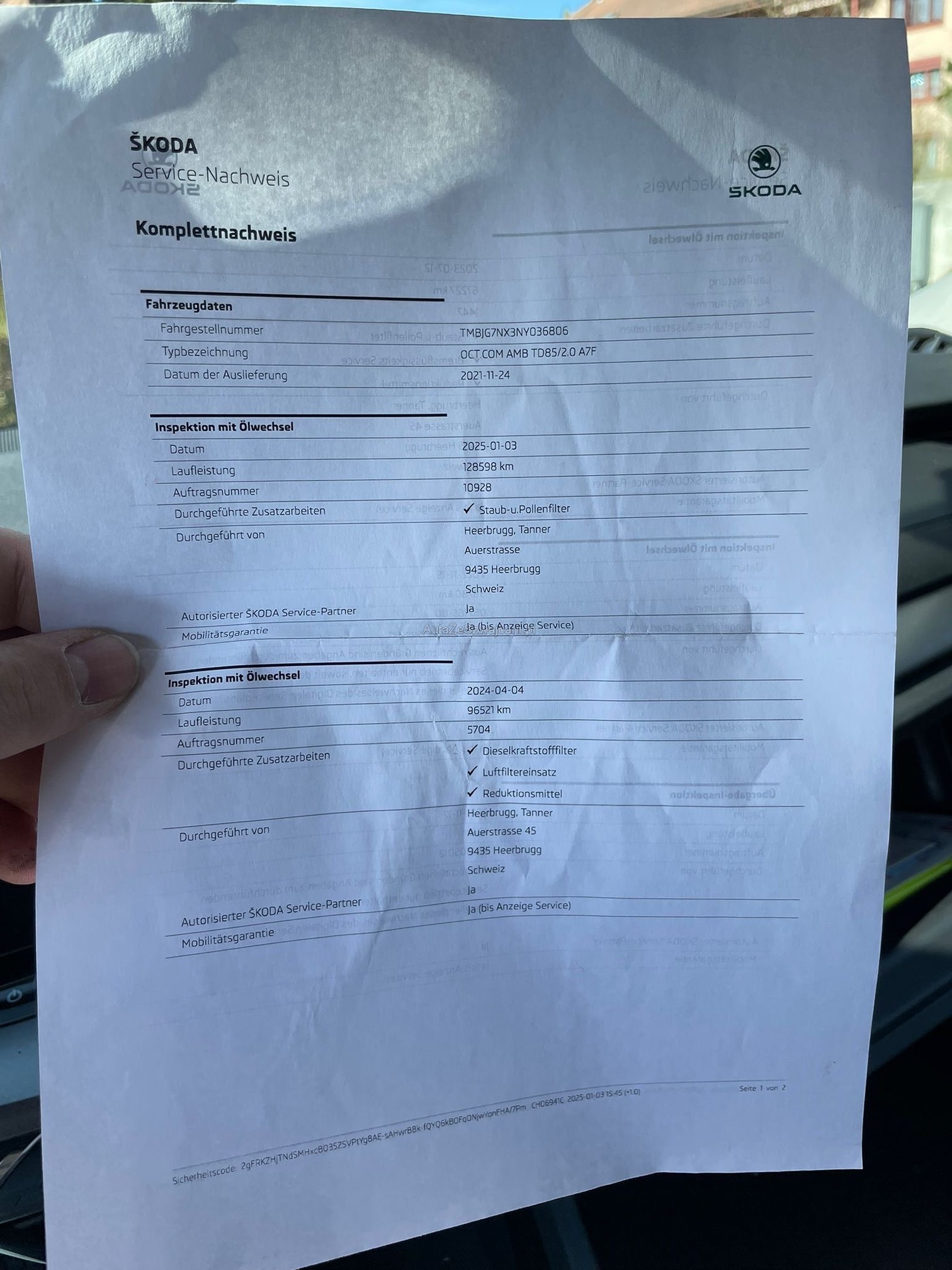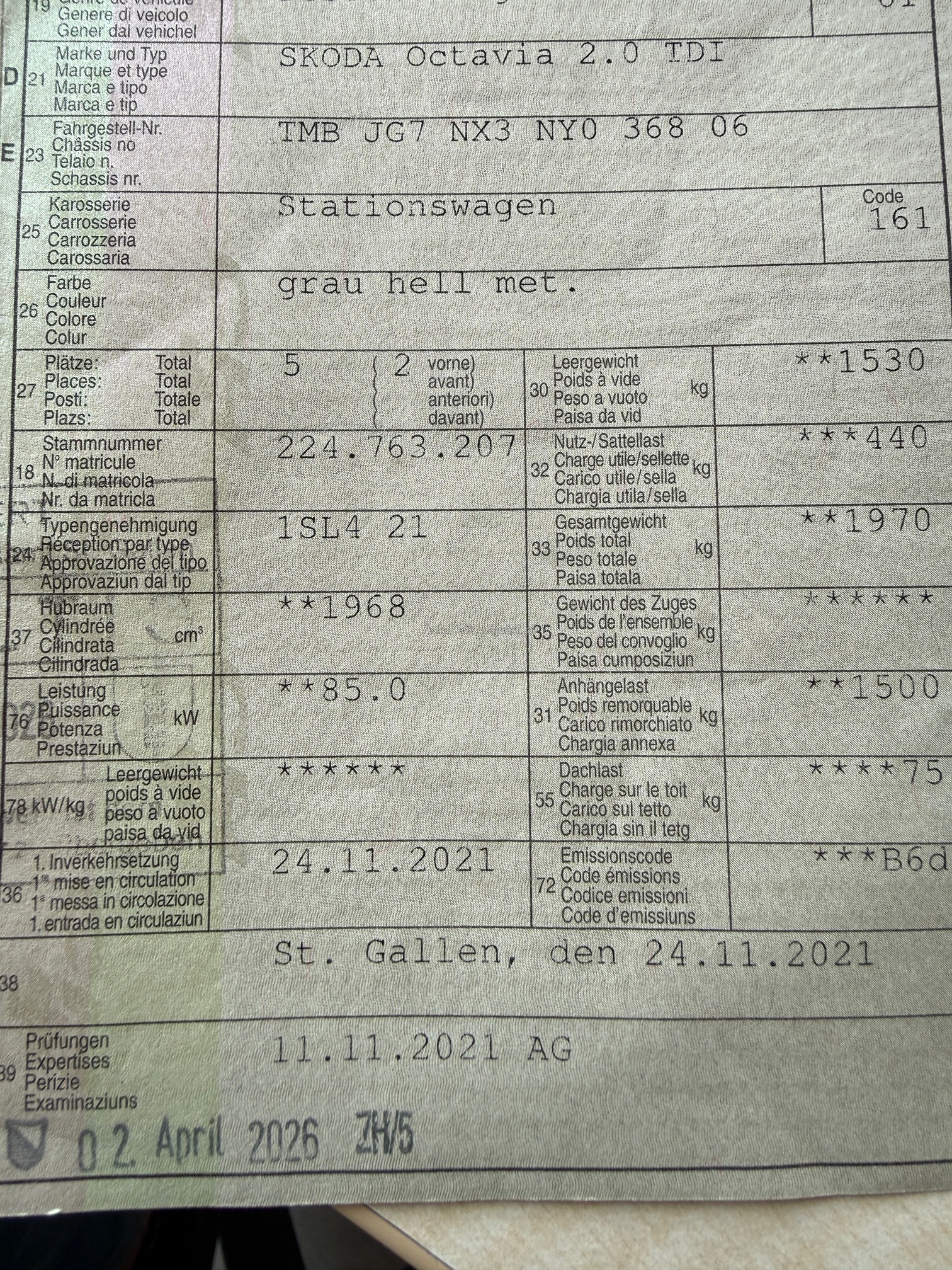 | Kommentar | Am Fahrzeug wurde kein Werkstatttest gemacht (Für sichtbare oder nicht sichtbare Mängel wird nicht gehaftet). Wir testen & kontrollieren nicht alle Funktionen vom Fahrzeug. Das Risiko liegt somit vollumfänglich beim Käufer. Nachdem der Höchstbietende den Zuschlag erhalten hat, gibt es keine Nachverhandlung, auch wenn nicht deklarierte Mängel zum Vorschein kommen sollten. Ab Platz ohne Garantie, die Gewährleistung ist vollständig ausgeschlossen, damit insbesondere auch Wandelung und Minderung. _ Sonderausstattung gemäss Eurotax ohne Gewähr: _ Assist: Regensensor mit Lichtassistent (Coming Home, Leaving Home, Tunnel Light) Scheibenwaschdüsen beheizt Media: SmartLink Premium Assist: Berganfahrassistent SunSet (Heckscheibe und hintere Seitenscheiben dunkel getönt) Paket: Navi Pack (Ambition) Räder: Leichtmetallräder 7,0 Jx 17" (ROTARE) silber 205/55 R17 Räder: Stahlnotrad inkl. Wagenheber, Radschraubenschlüssel (ohne Pannenset) Anhängerkupplung, mechanisch anklappbar mit elektrischer Entriegelung Paket: mySKODA Pack Basic Lackierung: Metallic-Lackierung |
