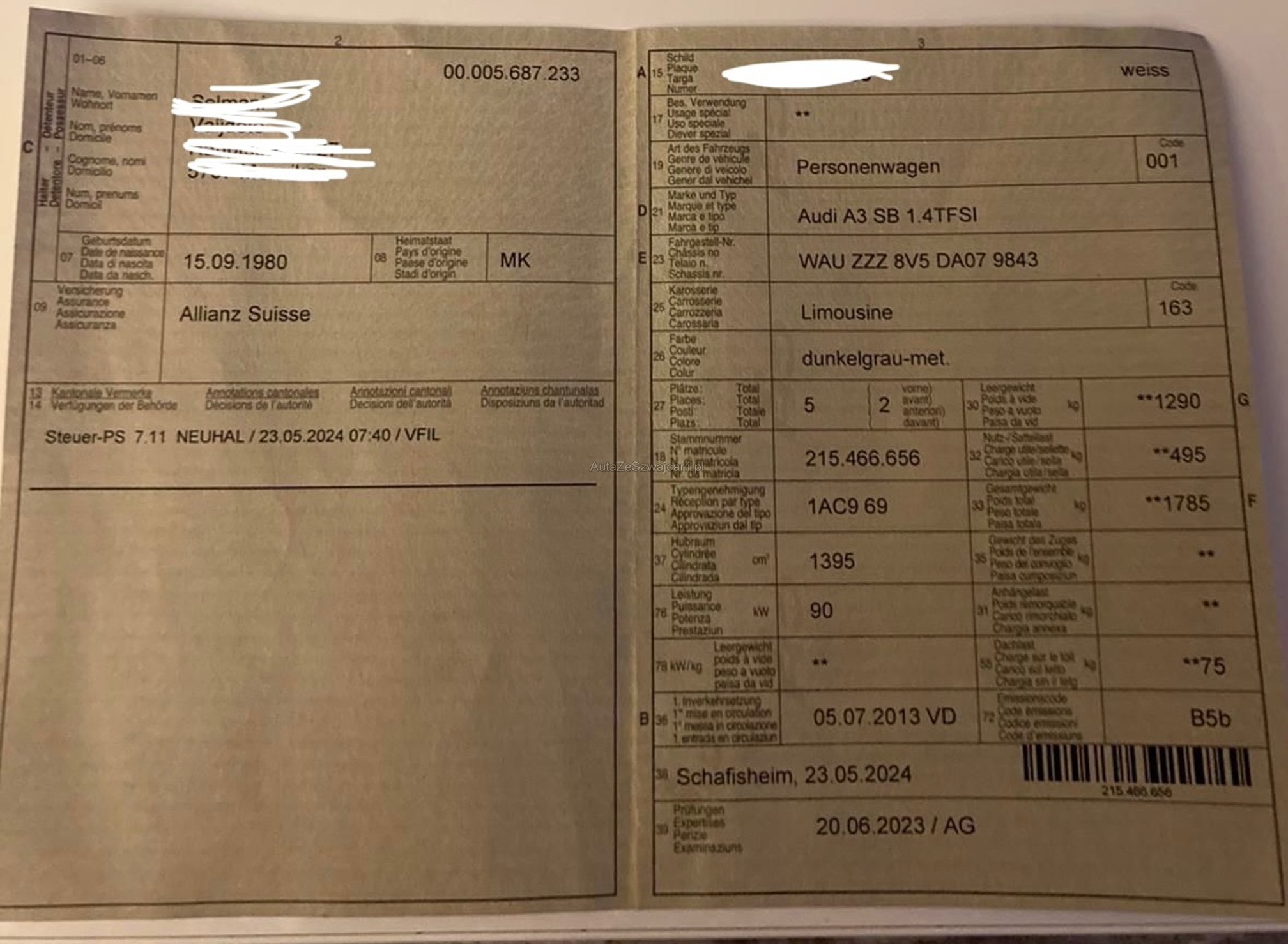 | VIN | WAUXXX |