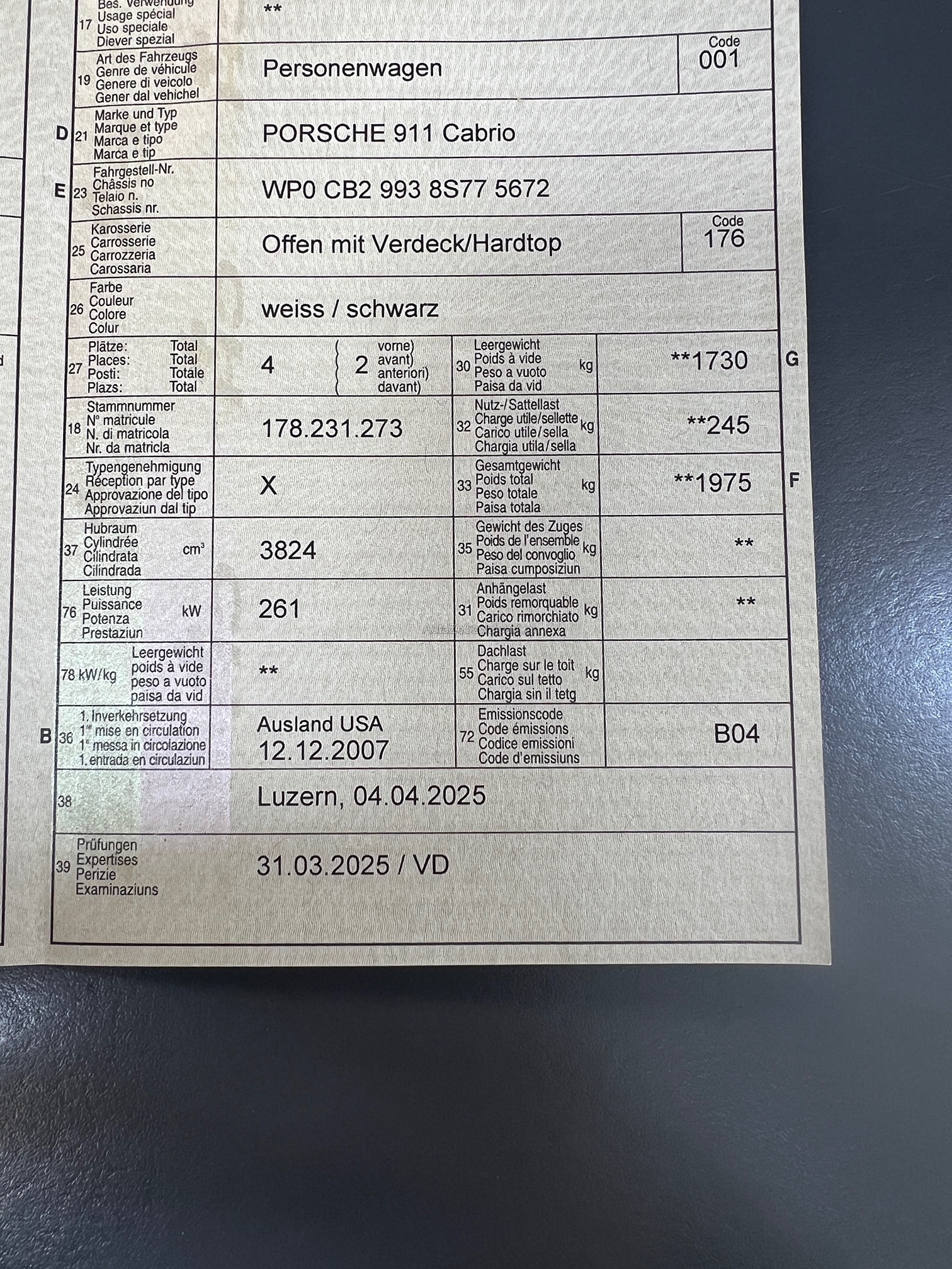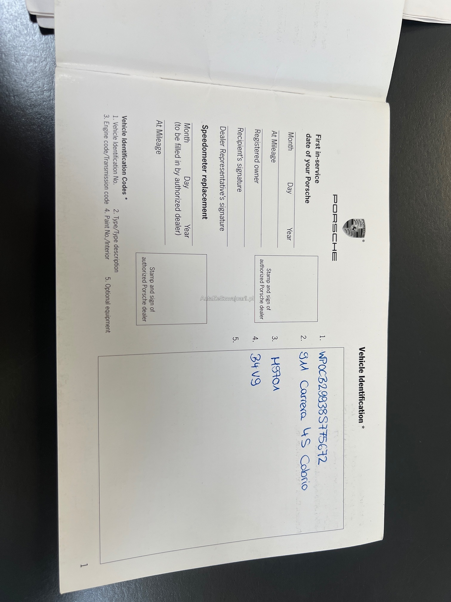 | VIN | WP0XXX |