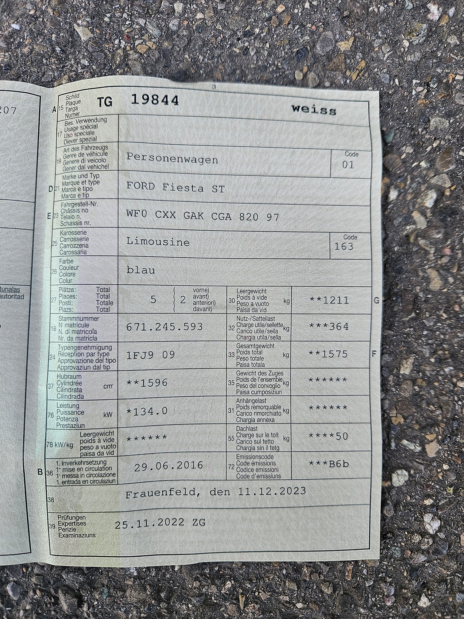 | VIN | WF0XXX |