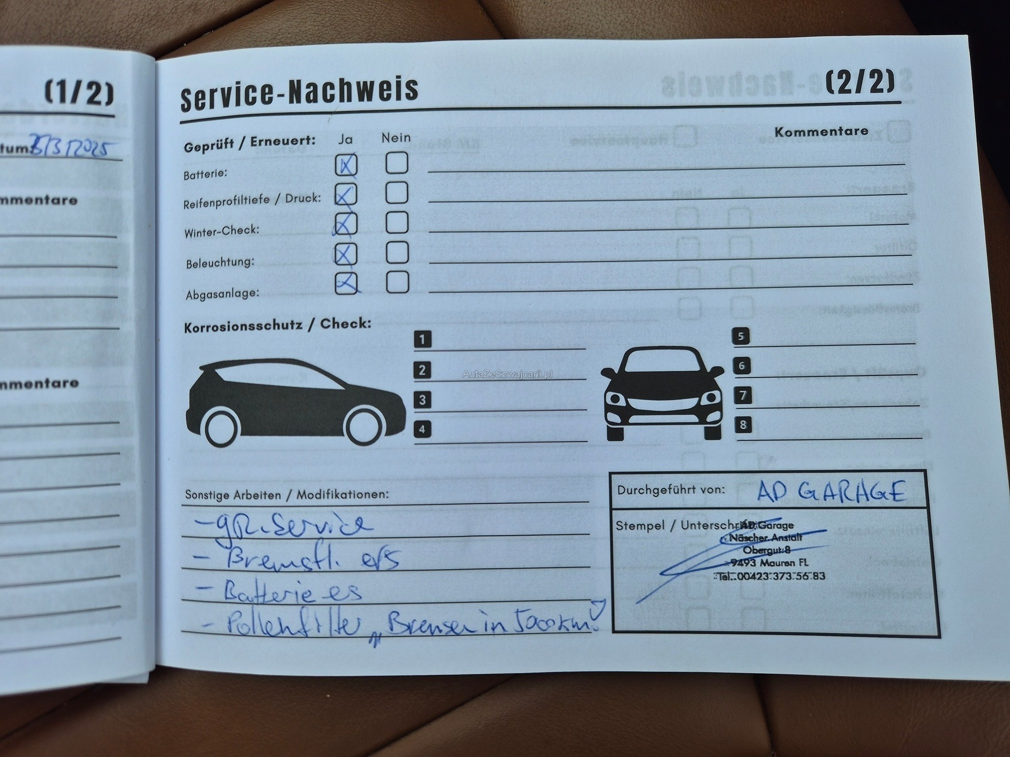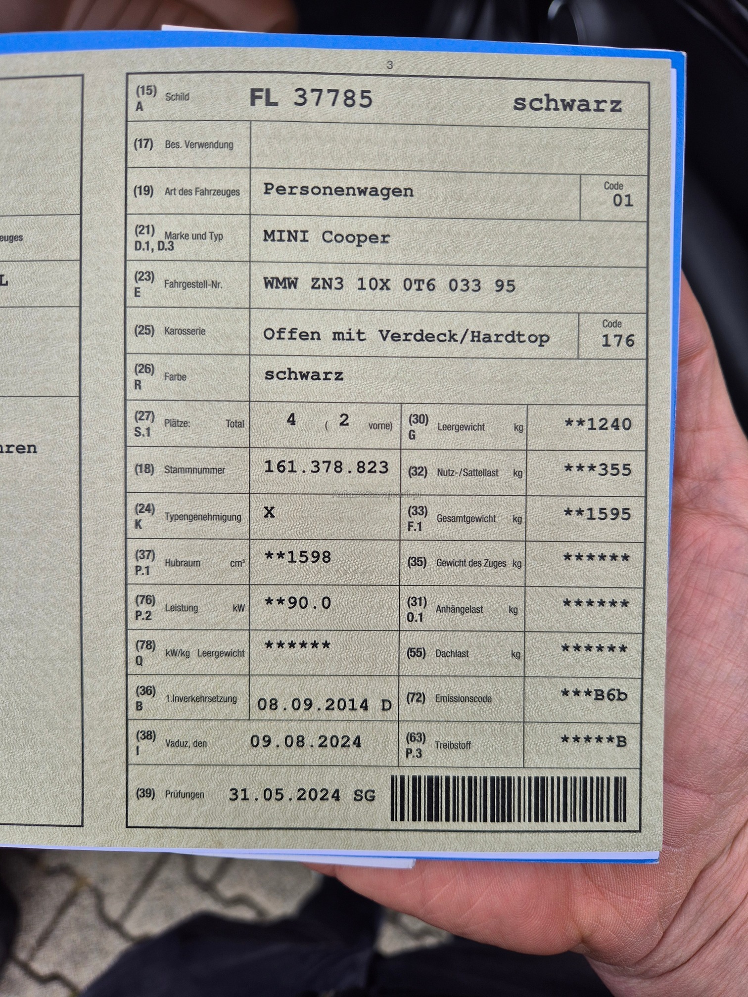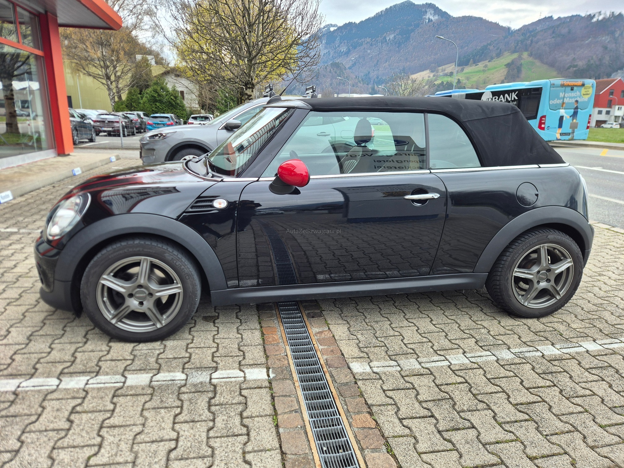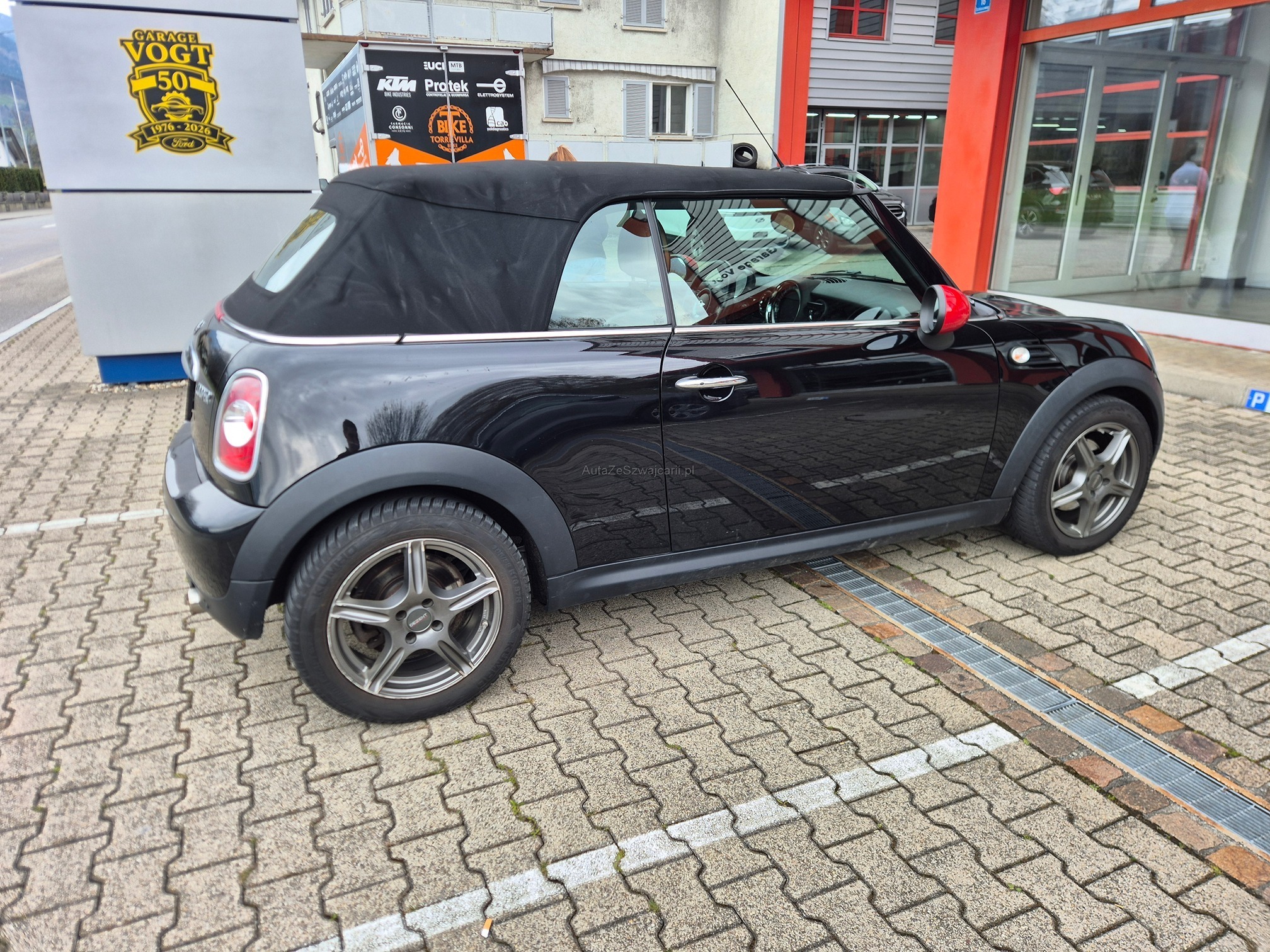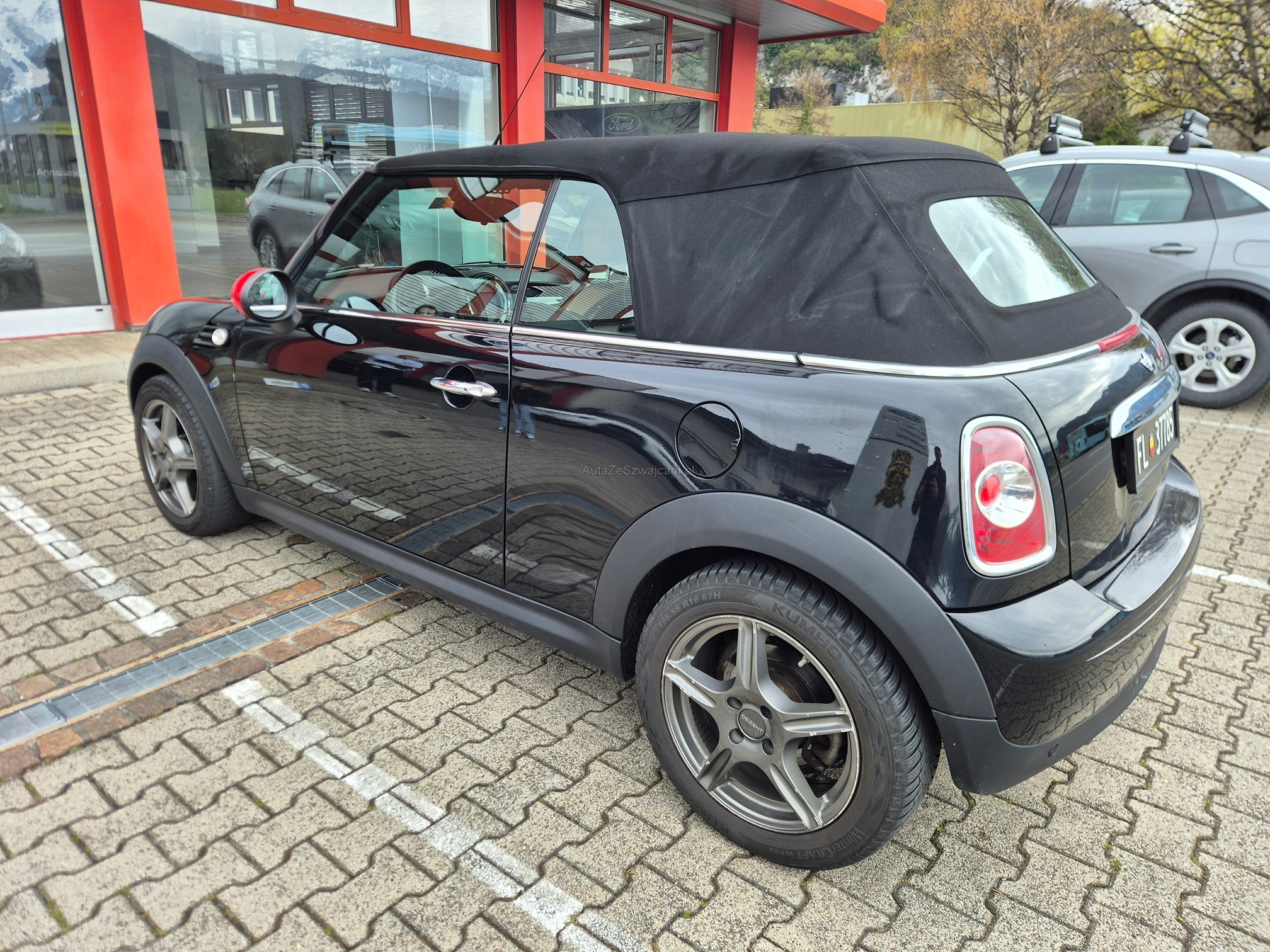 | Kommentar | Mögliches Eintauschfahrzeug. Fahrzeug startet und fährt sich normal. Keine technische Prüfung durchgeführt. Winterreifen sind zu ersetzen, Sommerreifen dabei, Originalfelgen fehlen aber. Aussen diverse Gebrauchspuren gemäss Fotos (Kratzer / kleinere Beulen, Felgenschäden). Verdeck elektrisch, funktioniert und ist gemäss Kunde dicht. |