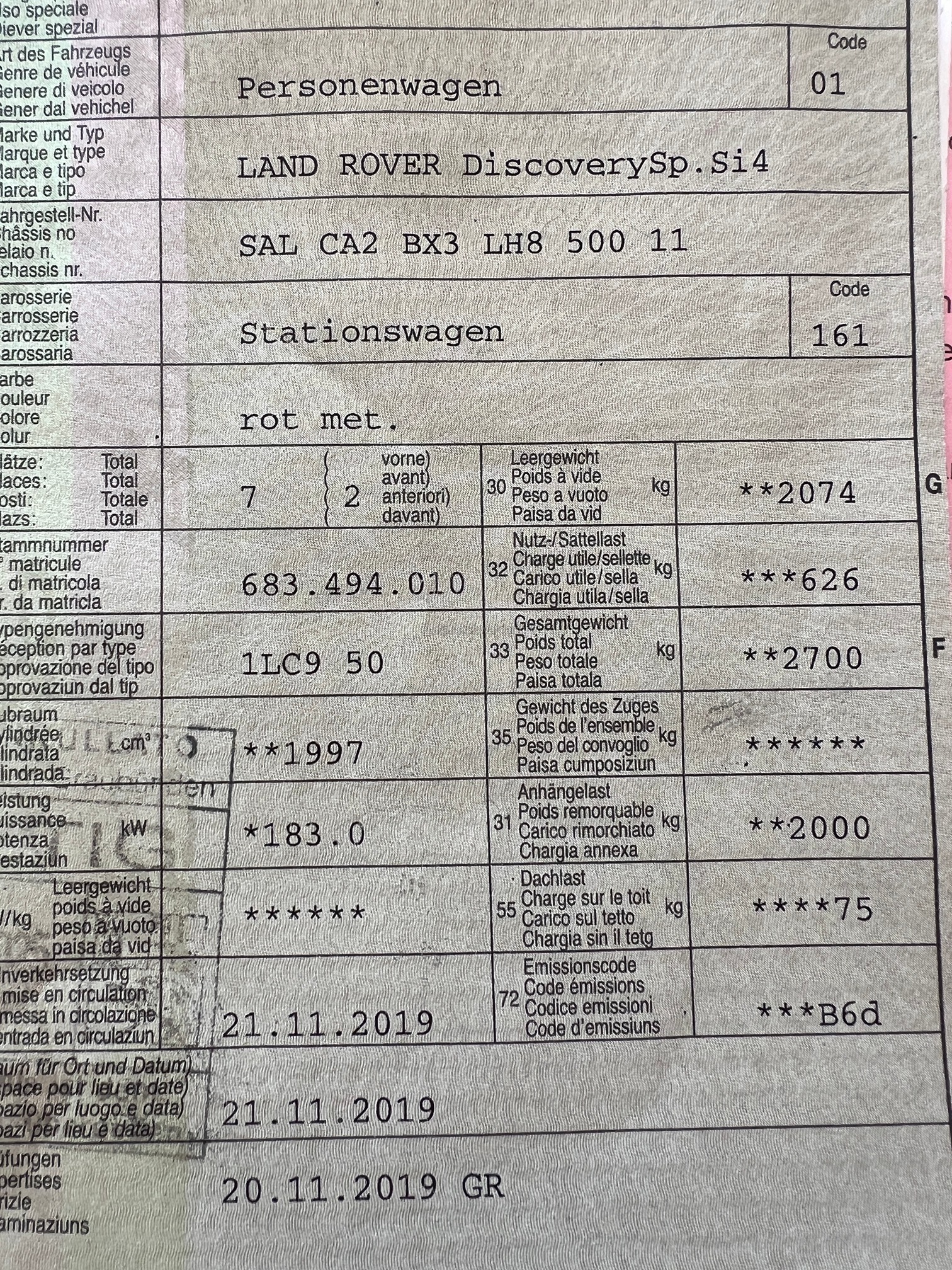 | Letzte Inspektion | 2019-11-01 |