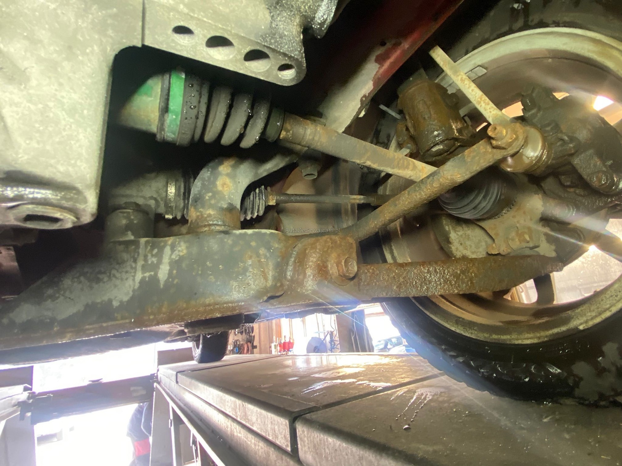 | Kommentar | Motor und Getriebe ist i.O, kein Lärm Bremsen vorne Rost -> ersetzen Scheinwerfer polieren Ölverlust: Oelfilterflansch Zwischen Getriebe und Verteilergetriebe Getriebedeckel links Diff. Hinten Eingang und bei beiden AT Wellen AT Manschetten hinten innen links und rechts gerissen. Koppelstange vorne links spiel Stabigummis innen müssen ersetzt werden Querlenker vo li. und re. Spiel / spröde, ersetzen Heckleuchte links Riss Auspuffverbindung zu Endtopf, Schraube abgerostet Stossstange hinten links gerissen / lose Kupplung zeitweise schwergängig, Funktion noch i.O. Service fällig Zustand gebraucht gemäss Fotos, Mängelliste ohne gewähr. |