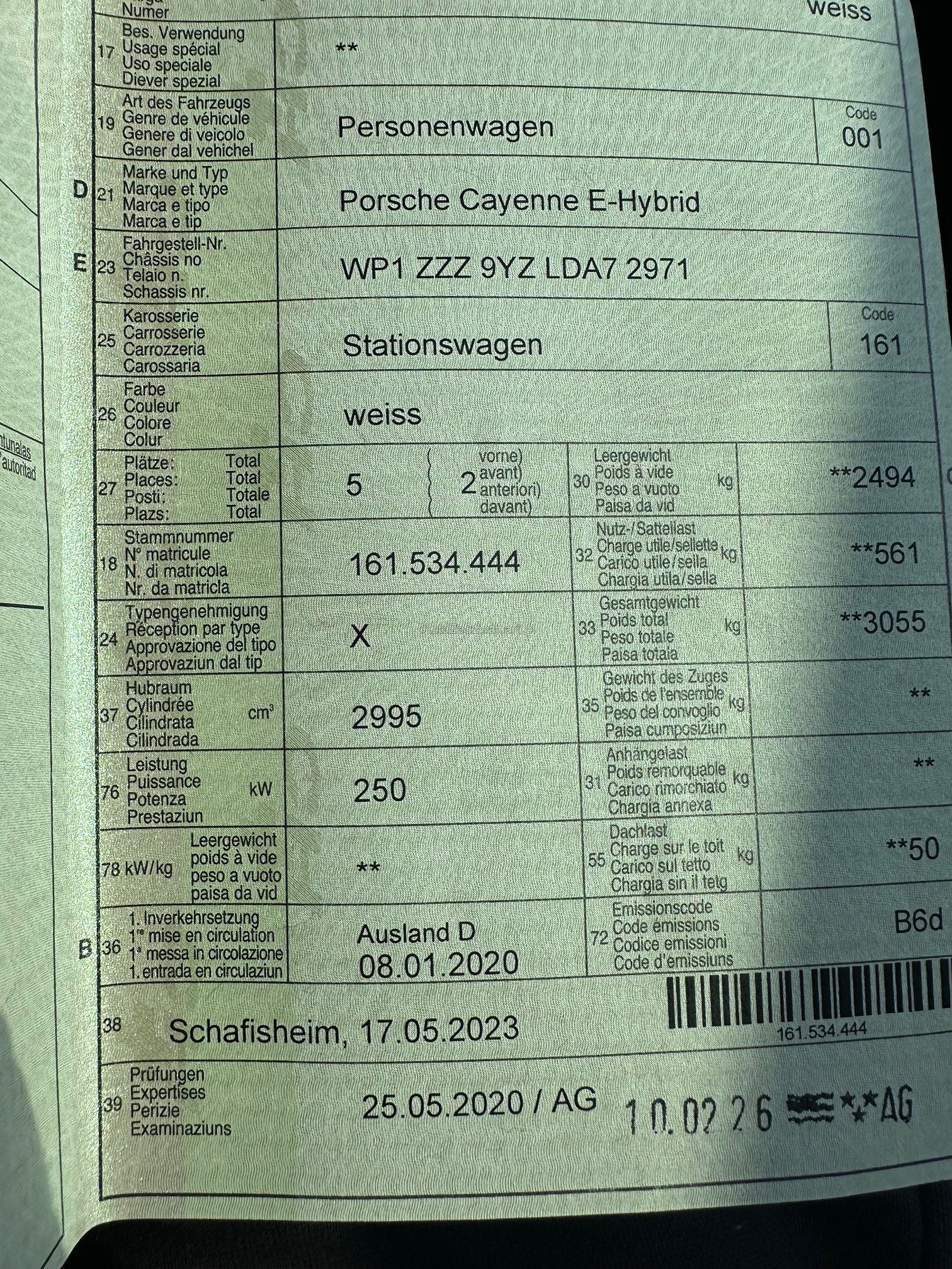 | Kommentar | Das Fahrzeug befindet sich in einem Top-Zustand. Alle Wartungen wurden jährlich in de Porsche-Werkstatt durchgeführt. Ich bin der erste Besitzer des Fahrzeugs. Approved Garantie bis Ende dieses Jahres, die jährlich bis zu 200.000 km oder maximal 15 Jahre verlängert werden kann. Das Auto hat Winterbereifung und Sommer. |