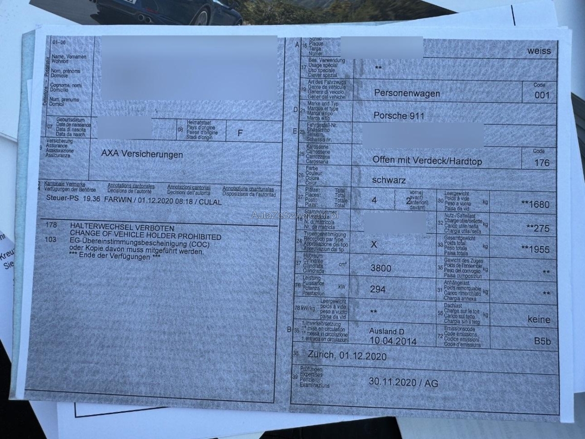 | Fahrzeugausweis | Vorhanden |