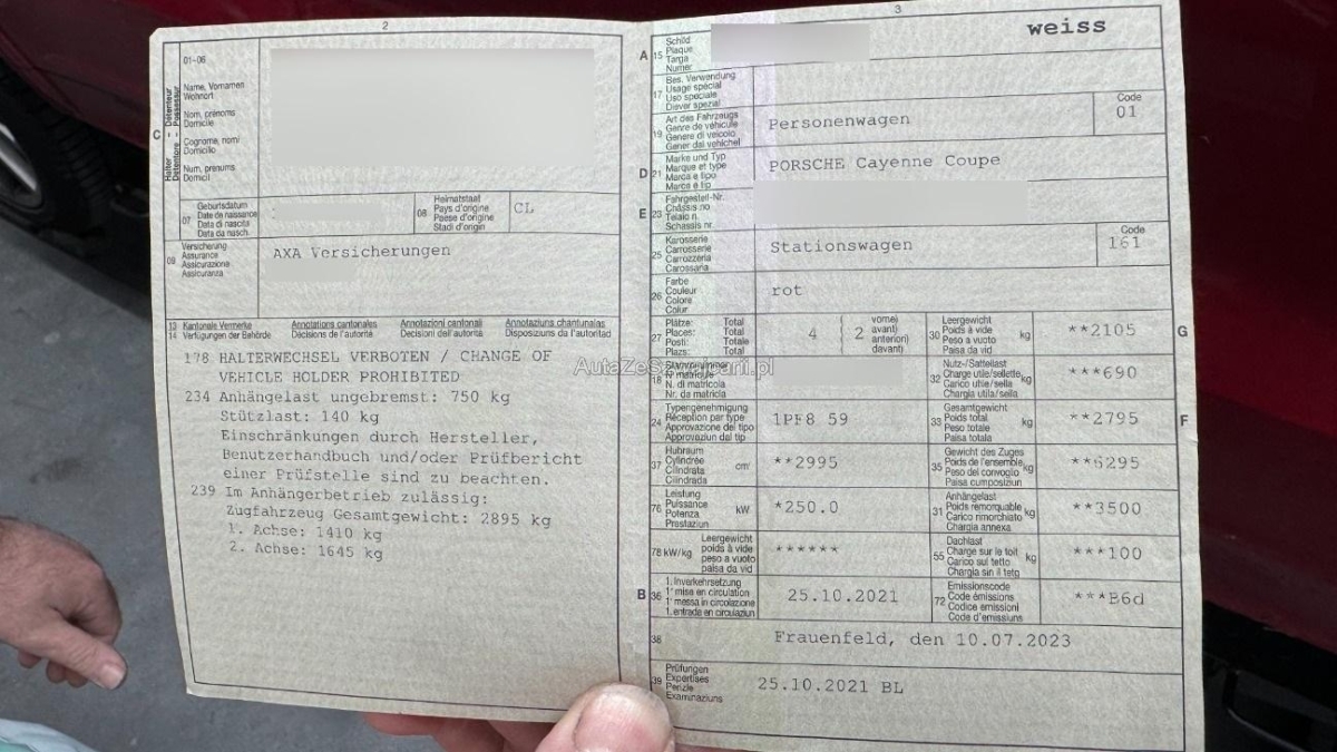 | Fahrzeugausweis | Vorhanden |