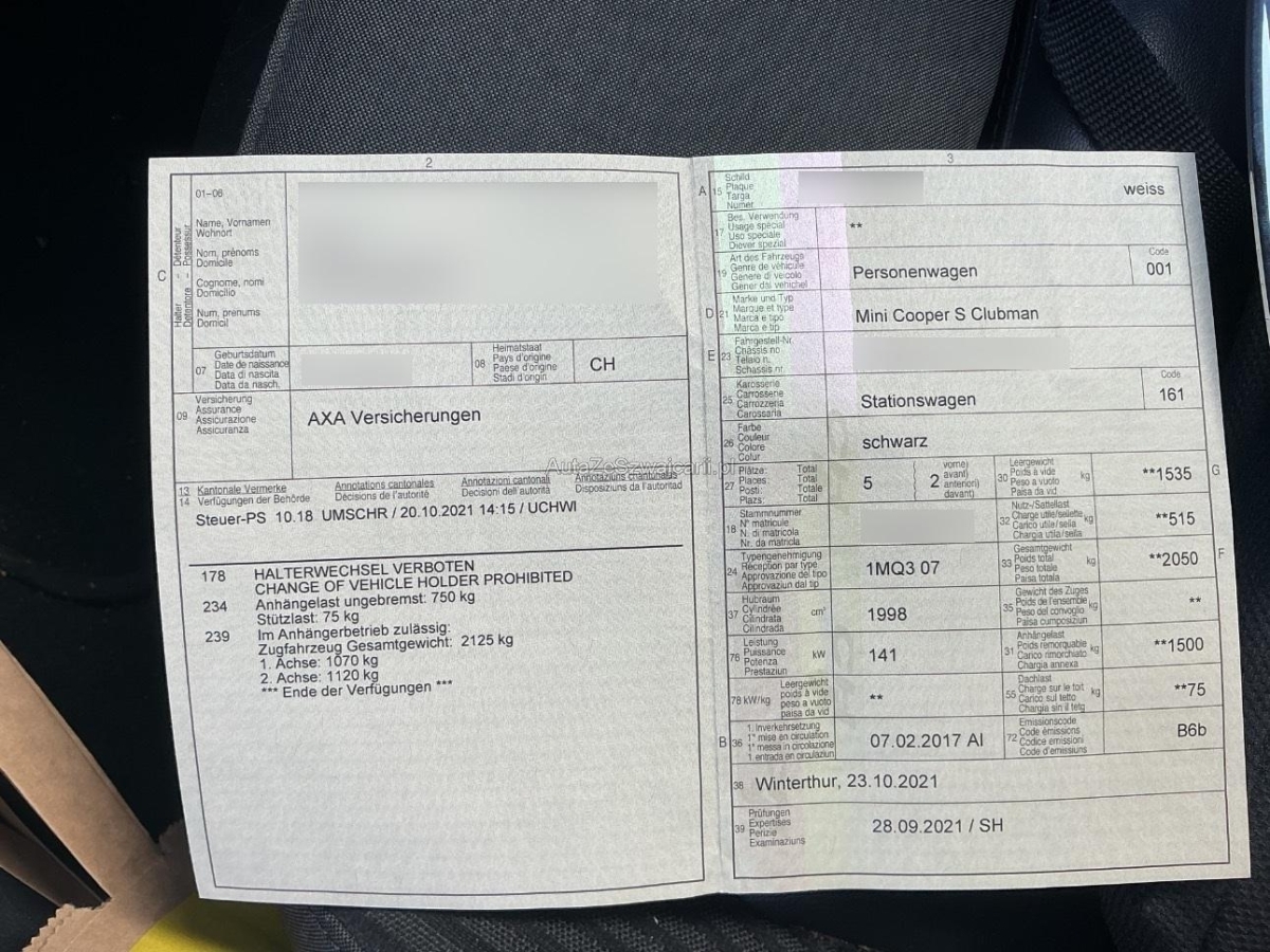 | Fahrzeugausweis | Vorhanden |