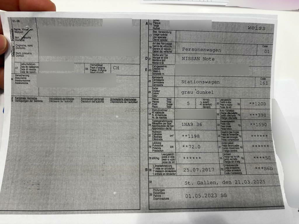 | Fahrzeugausweis | Vorhanden |