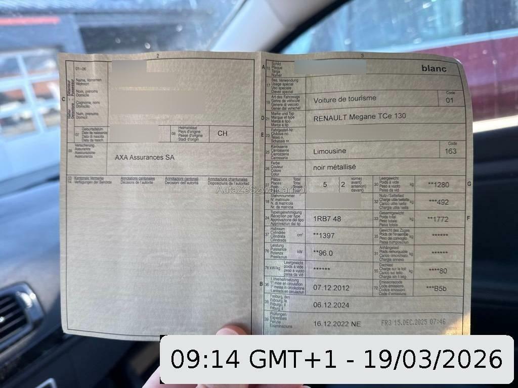 | Fahrzeugausweis | Vorhanden |