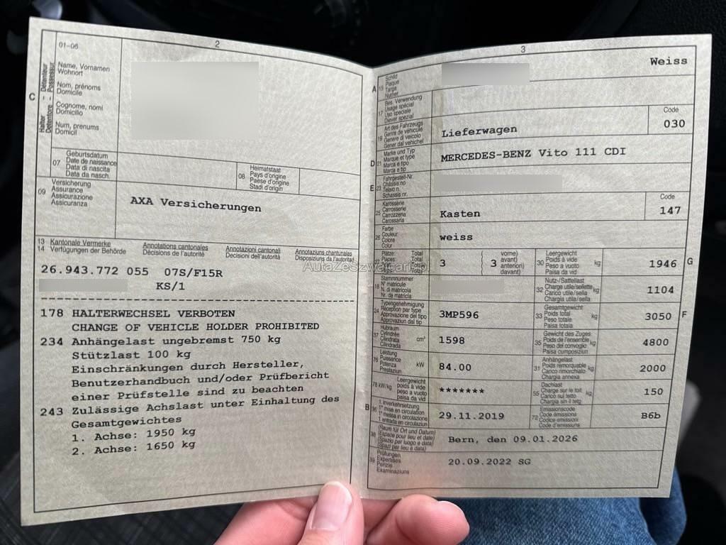 | Fahrzeugausweis | Vorhanden |