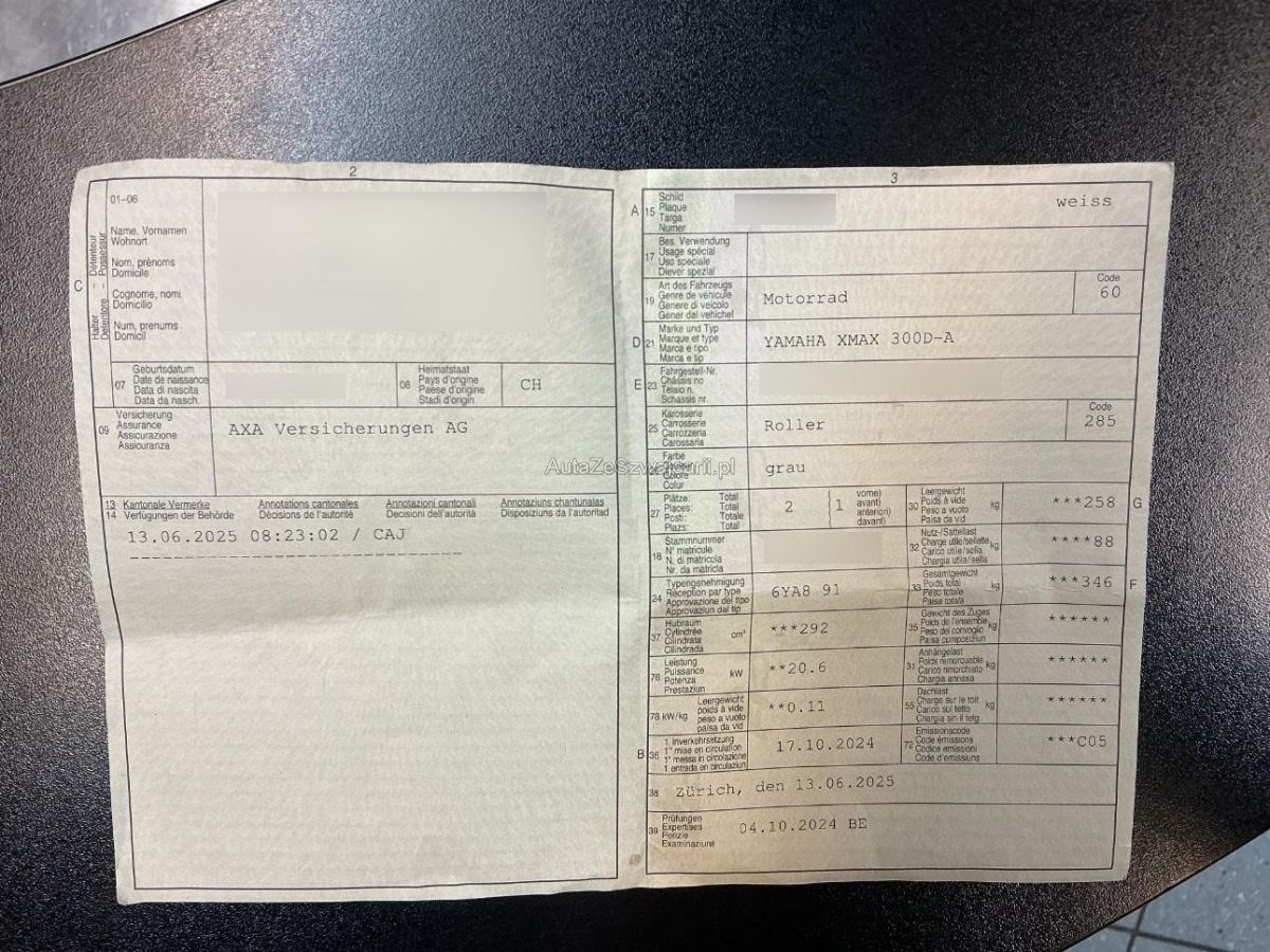| Fahrzeugausweis | Vorhanden |
