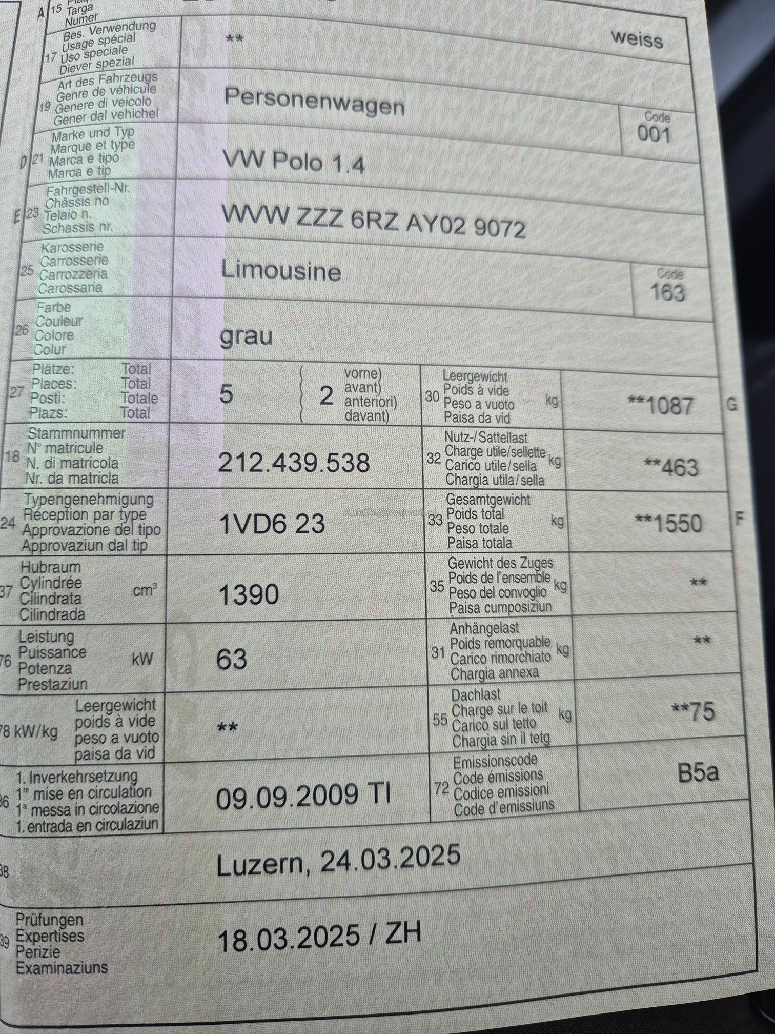 | Kommentar | Fahrzeug ab MFK 03.2025 Leichter Hagelschaden Keine Technische Prüfung, Fahrzeug ab Platz und ohne Garantie |