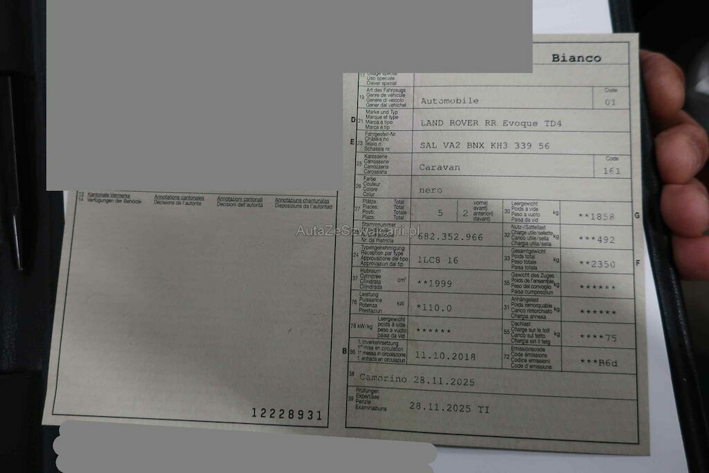 | Typ | EVOQUE 2.0 TD4 PURE |