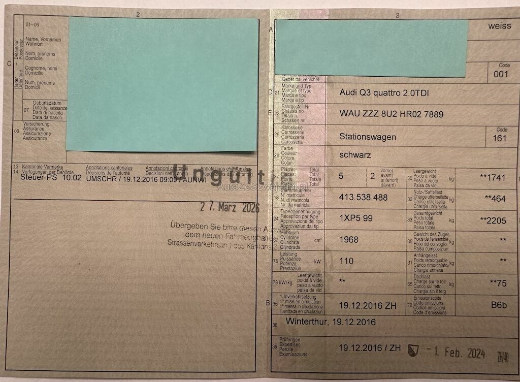 | Typ | Q3 quattro 2.0 TDI |