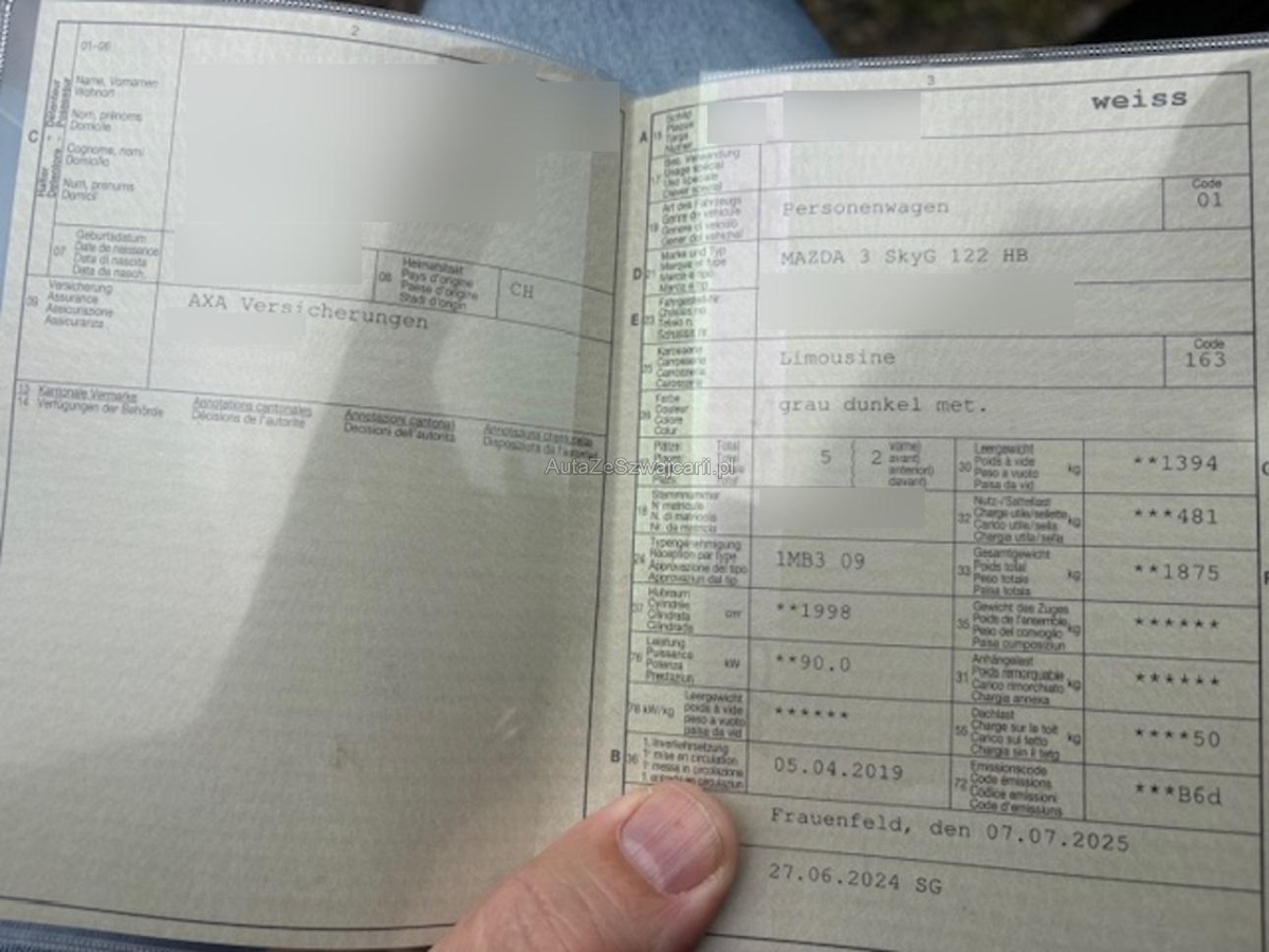 | Fahrzeugausweis | Vorhanden |