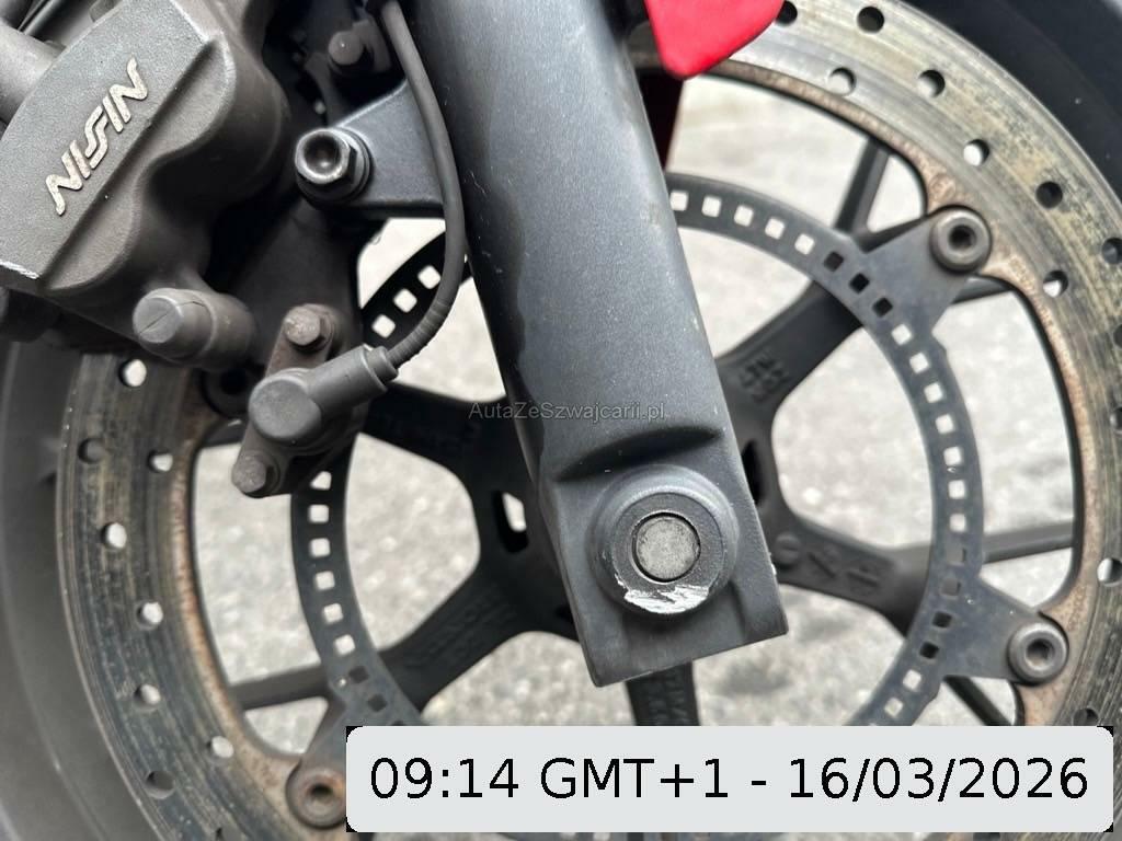 | Beschädigungen | Auspufftopf, Aussenspiegel rechts, Front, Fussraster rechts, Gabelholm, Griff rechts, Lenkanschlag, Lenker, Schutzblech vorne, Seite rechts, Windschutzscheibe |