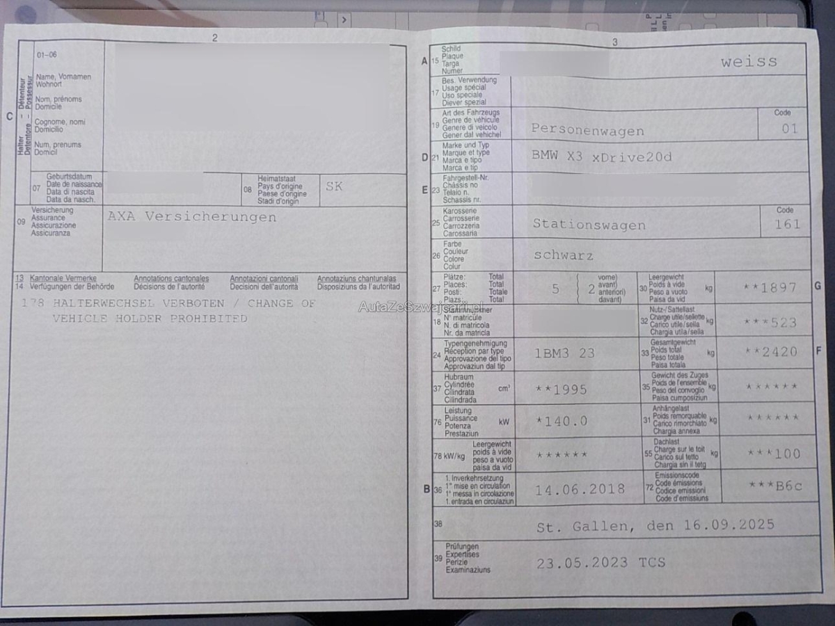 | Fahrzeugausweis | Vorhanden |
