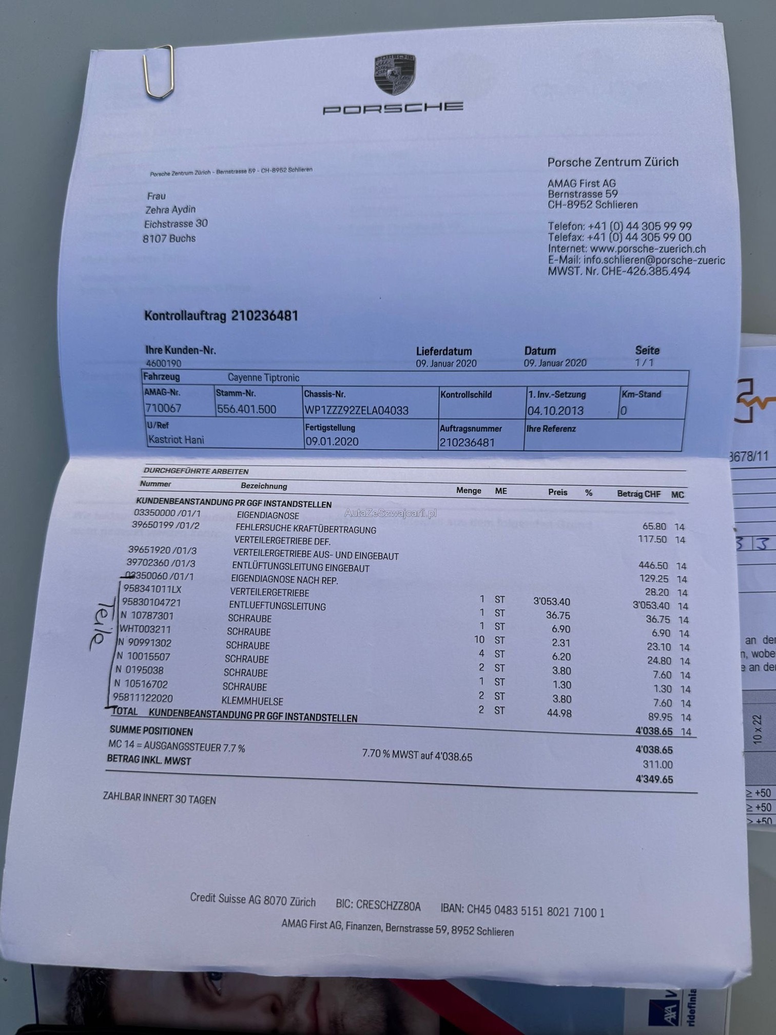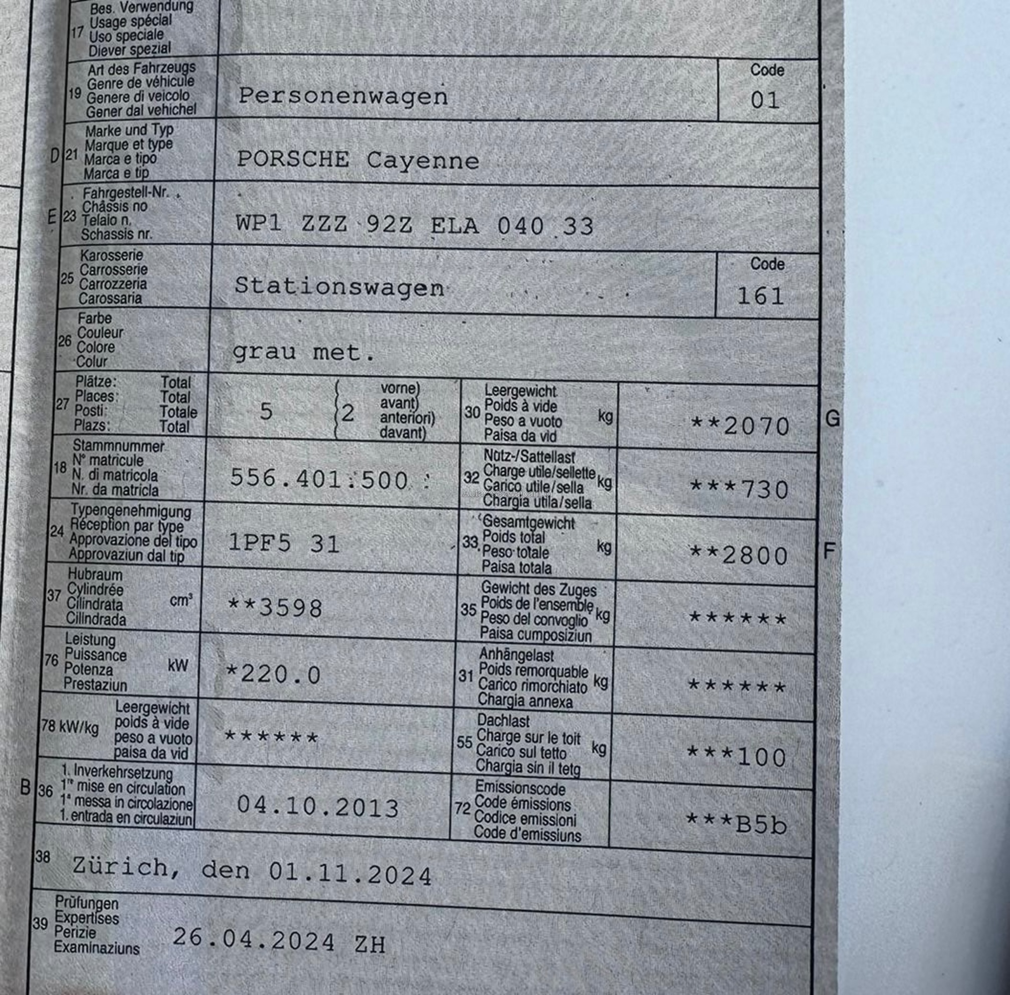 | VIN | WP1XXX |