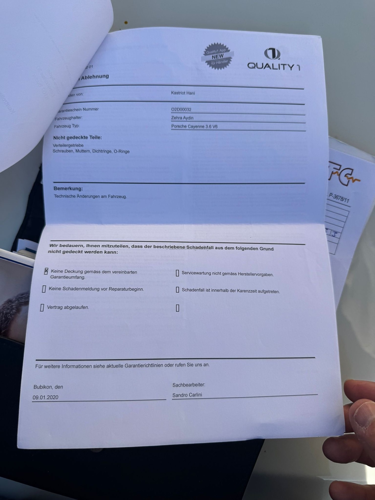 | Getriebe defekt nicht funktionsfähig | No |
