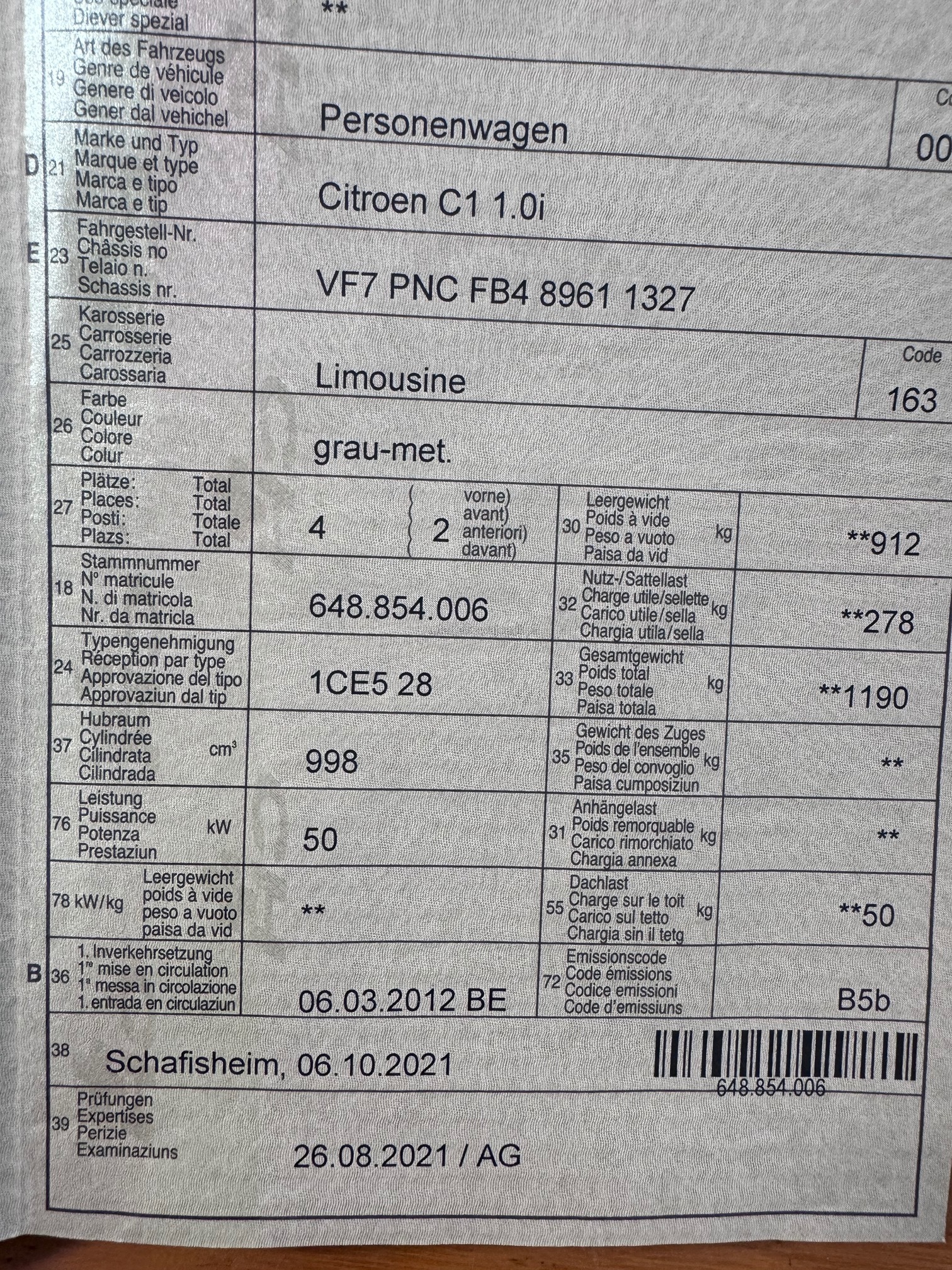 | Kommentar | Dieses Fahrzeug haben wir eingetauscht. Auto braucht MFK. Wir haben keinen Werkstatttest durchgeführt. Auto war bis gestern in Betrieb. Radio lässt sich nicht leiser stellen. Ist jetzt auf maximaler Lautstärke. Eine grosse Beule vorne Beifahrerseite und diverse Parkbeulen seitlich. Fahrzeug kann auch besichtigt oder probegefahren werden. |