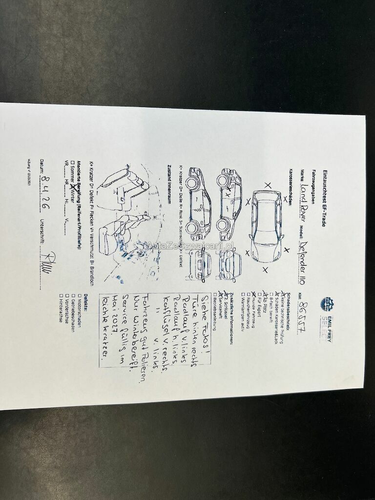 Türe hinten rechts, Radlauf vorne links, Radlauf hinten links, Kotflügel vorne rechts, Kotflügel vorne links, Nur Winterbereift, Keine Technische Prüfung.