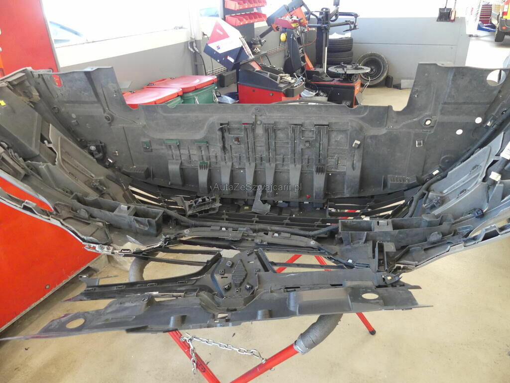 Motorhaube gestaucht, Kotflügel rechts gebrochen, Stossstange, Frontmaske, Luftführungen, Scheinwerfer rechts beschädigt.