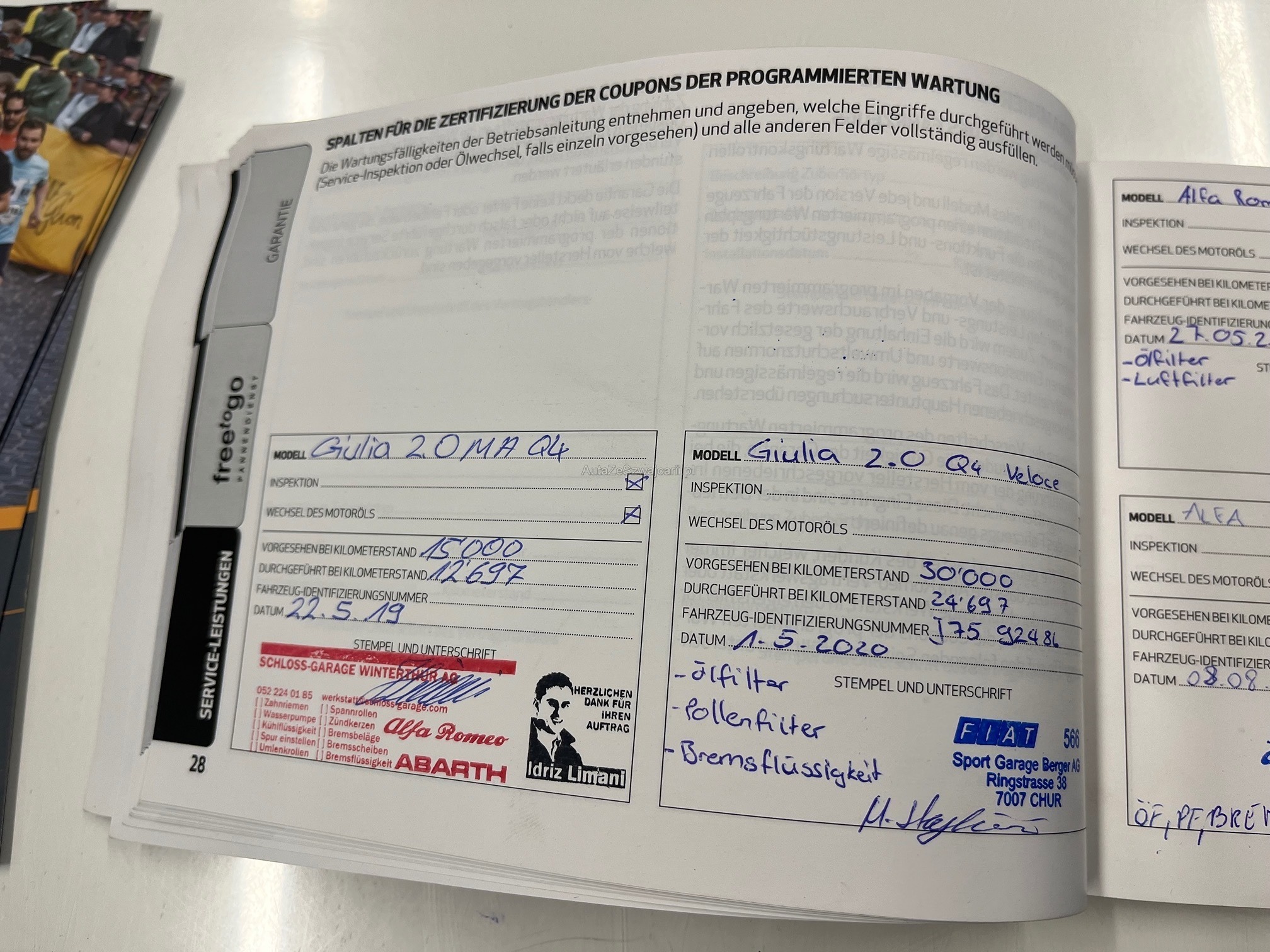 | Kommentar | Kunde möchte ein neues Fahrzeug ab Werk bestellen (Lieferfrist ca. 4-5 Monate) - darum Kilometerstand bei Übergabe nur ungefähr (keine Gewährleistung) Alfa aus 1. Hand - sehr gepflegt Carrosserie wird noch vor Verkauf von uns repariert (nur Parkschaden vorhanden) Sommerfelgen werden auch noch repariert und lackiert, Kunde hat jetzt 4 neue Continental Sport Contact 7 montiert (Mischbereifung), Motor hat Steuerkette |