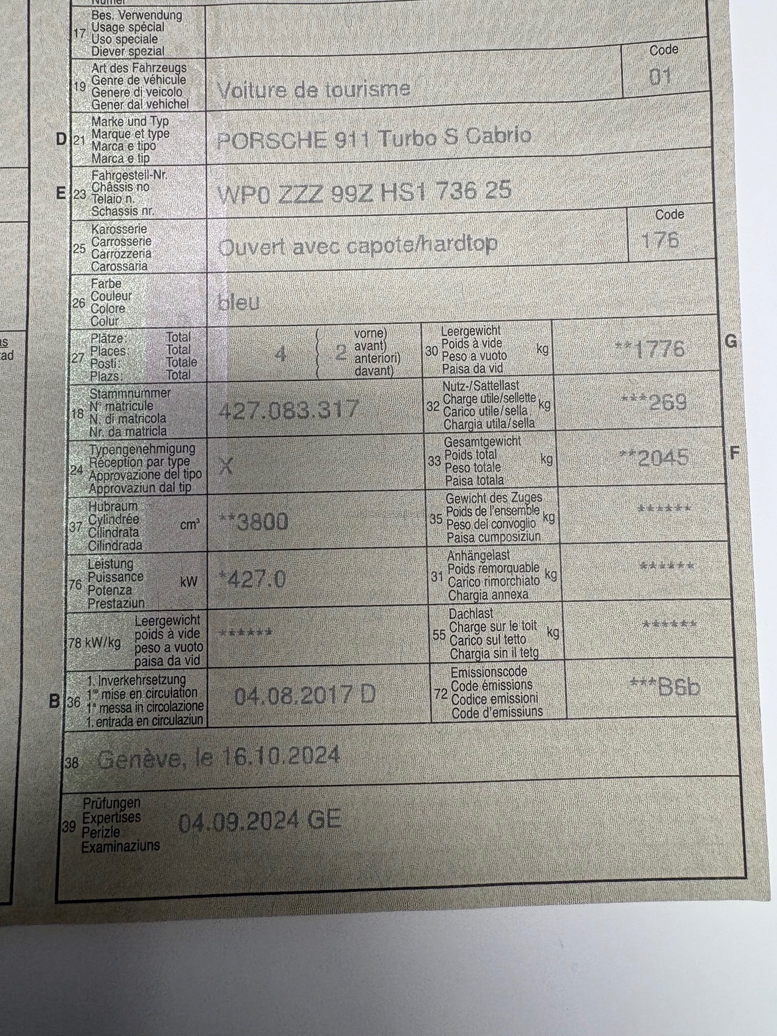 | VIN | WP0XXX |