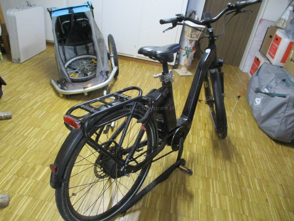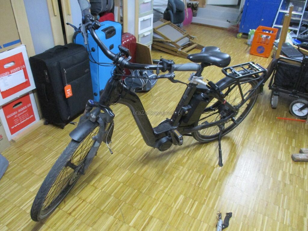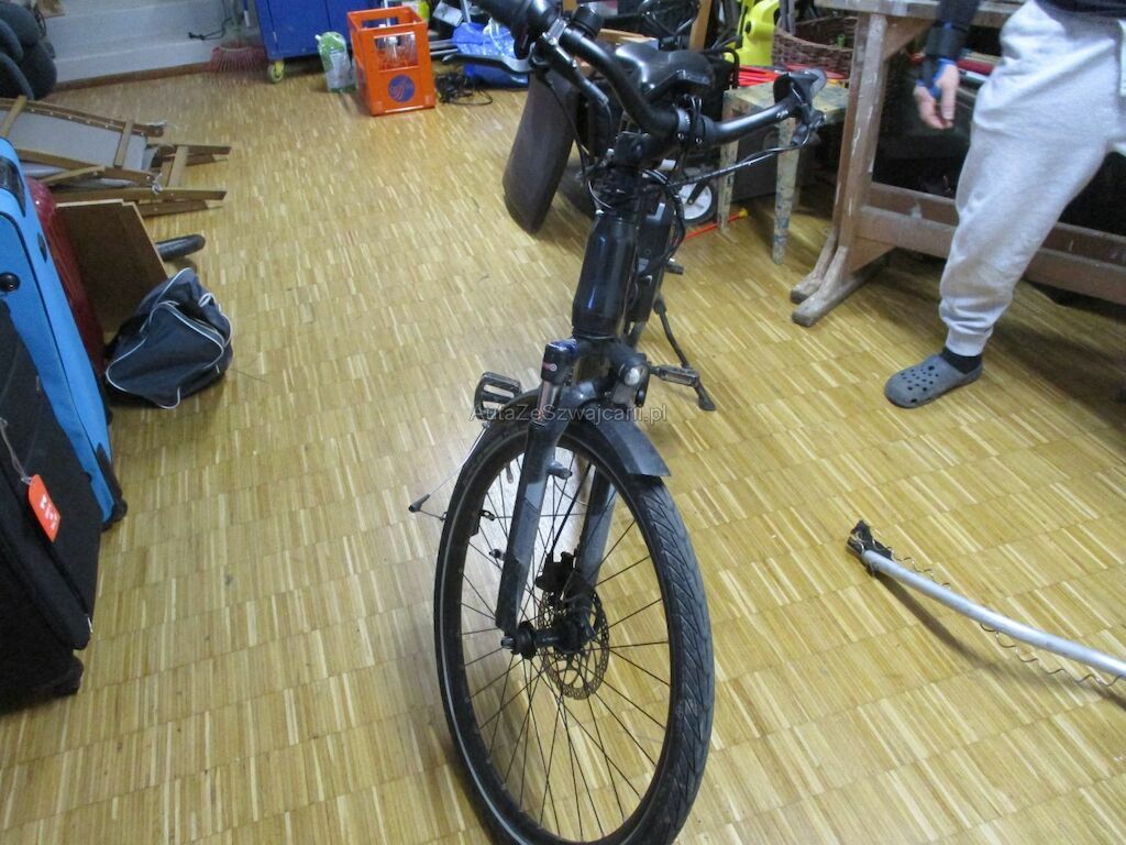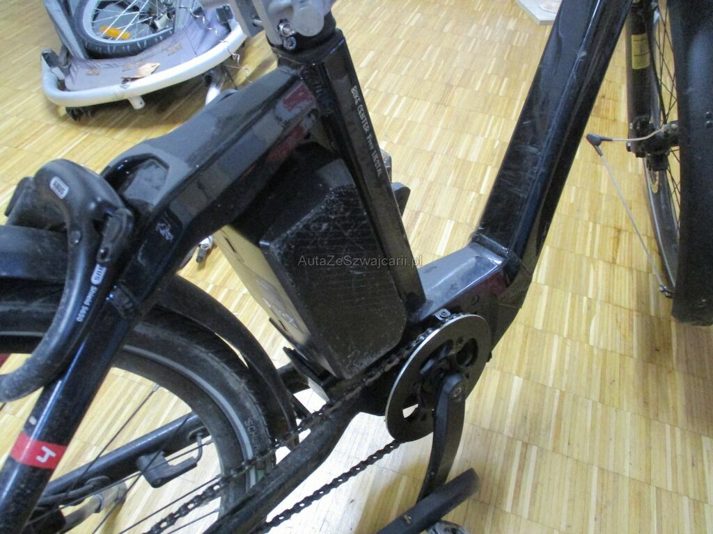 Das Velo kam auf die rechte Seite zu liegen. Dabei wurde der Akku beschädigt. Desweiteren sind die Pedale, die Griffe, Bremshebel und die Schutzbleche beschädigt. Der Gepäckträger und das Hinterrad muessen erneuert werden.