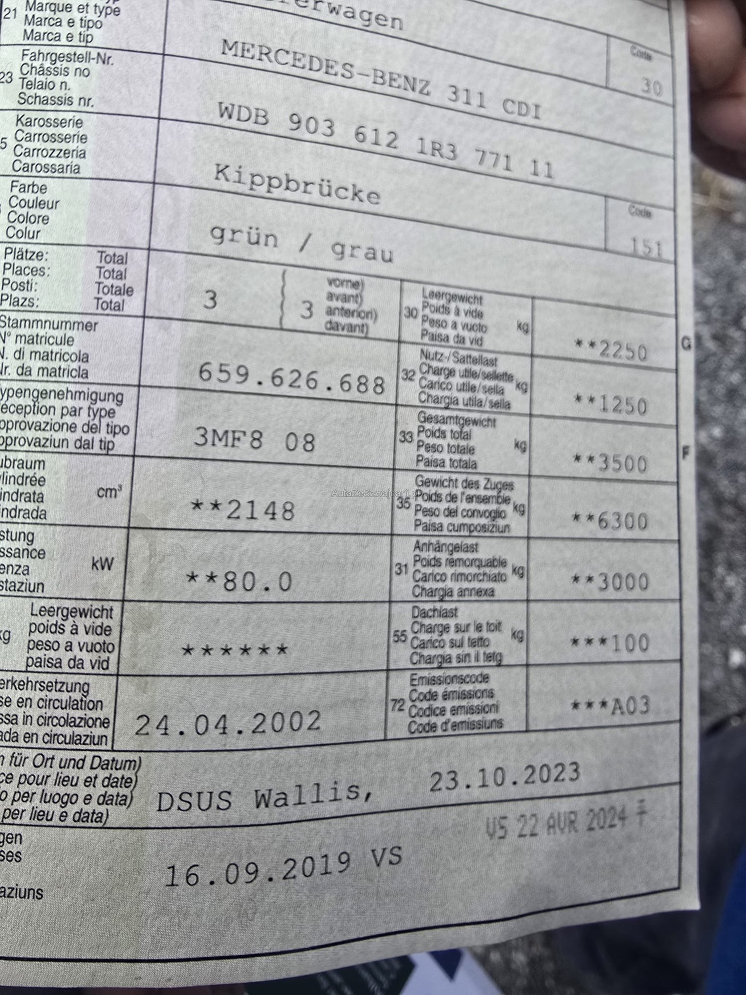 | Kommentar | Im kundenauftrag zu verkaufen. Bilder und beschrieb von ihm geliefert. Wir übernehmen keine haft für nicht deklarierte mängel! Carroserie wurde alles neu lackiert vor 2 jahre. Laut ihm funktioniert alles. Lieferwagen ist in betrieb. Kipper OK. |