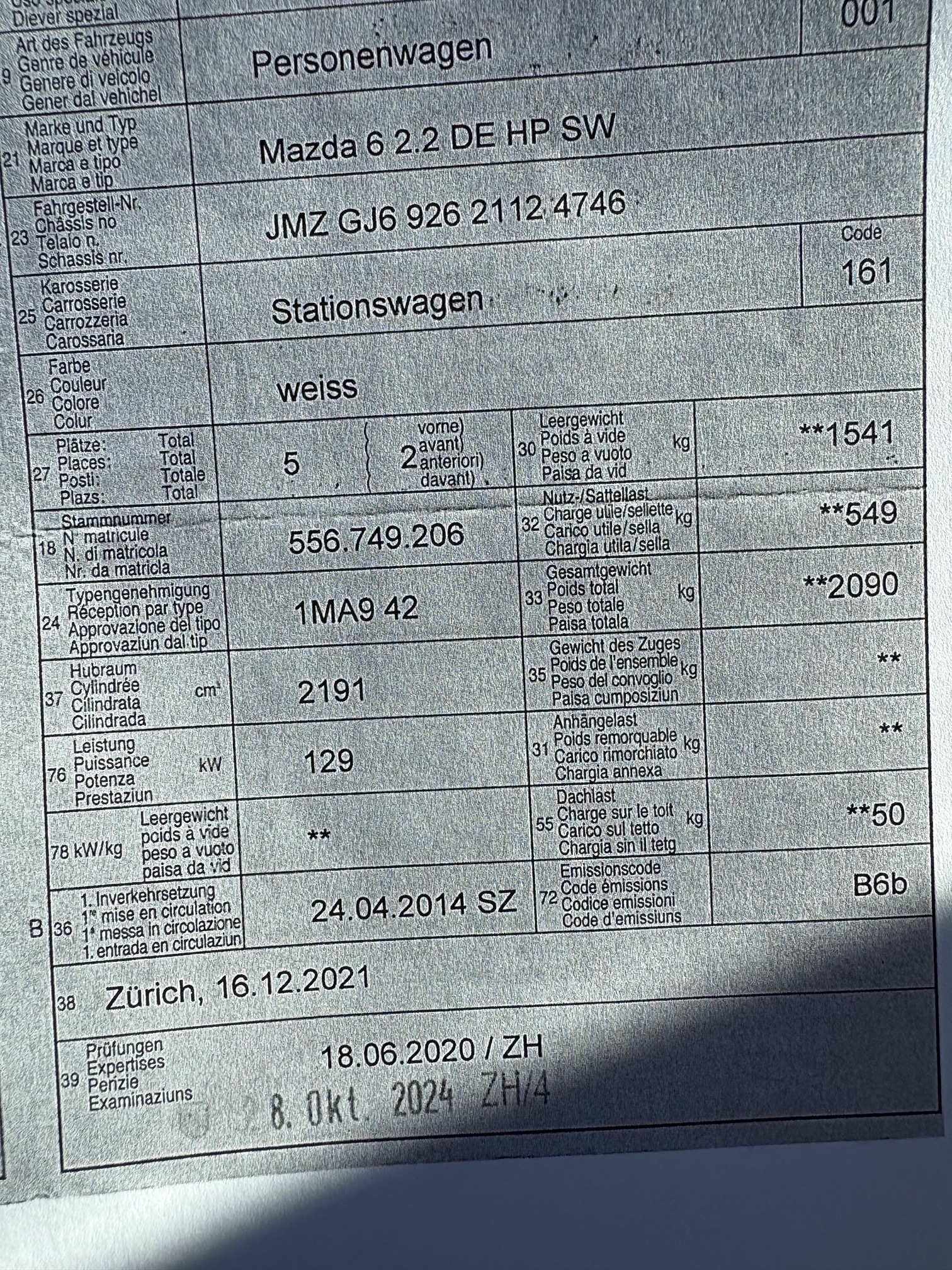 MAZDA 6 2.2 DE HP SW