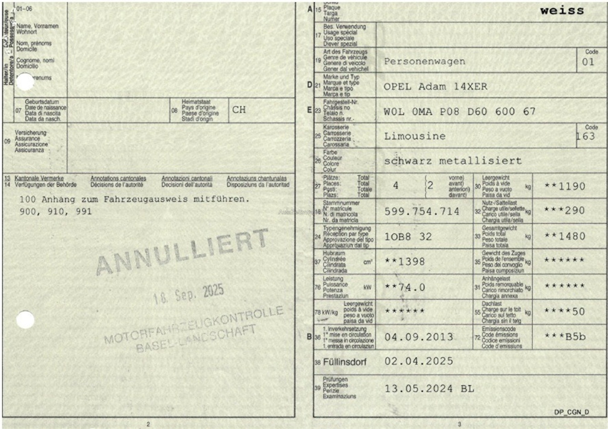 | VIN | W0LXXX |